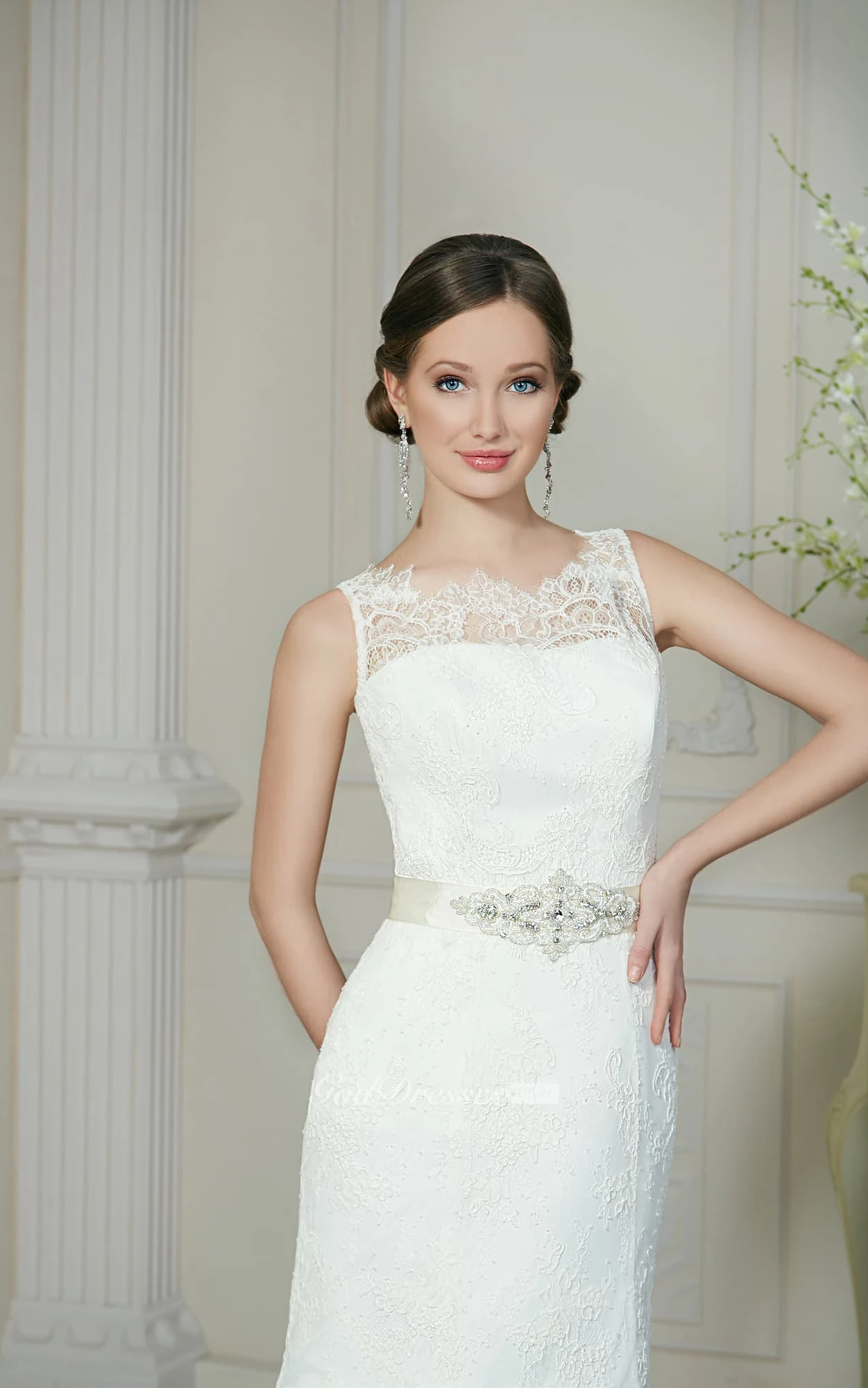 Trumpet Floor-Length Jewel-Neck Sleeveless Corset-Back Lace Dress With Sash And Beading