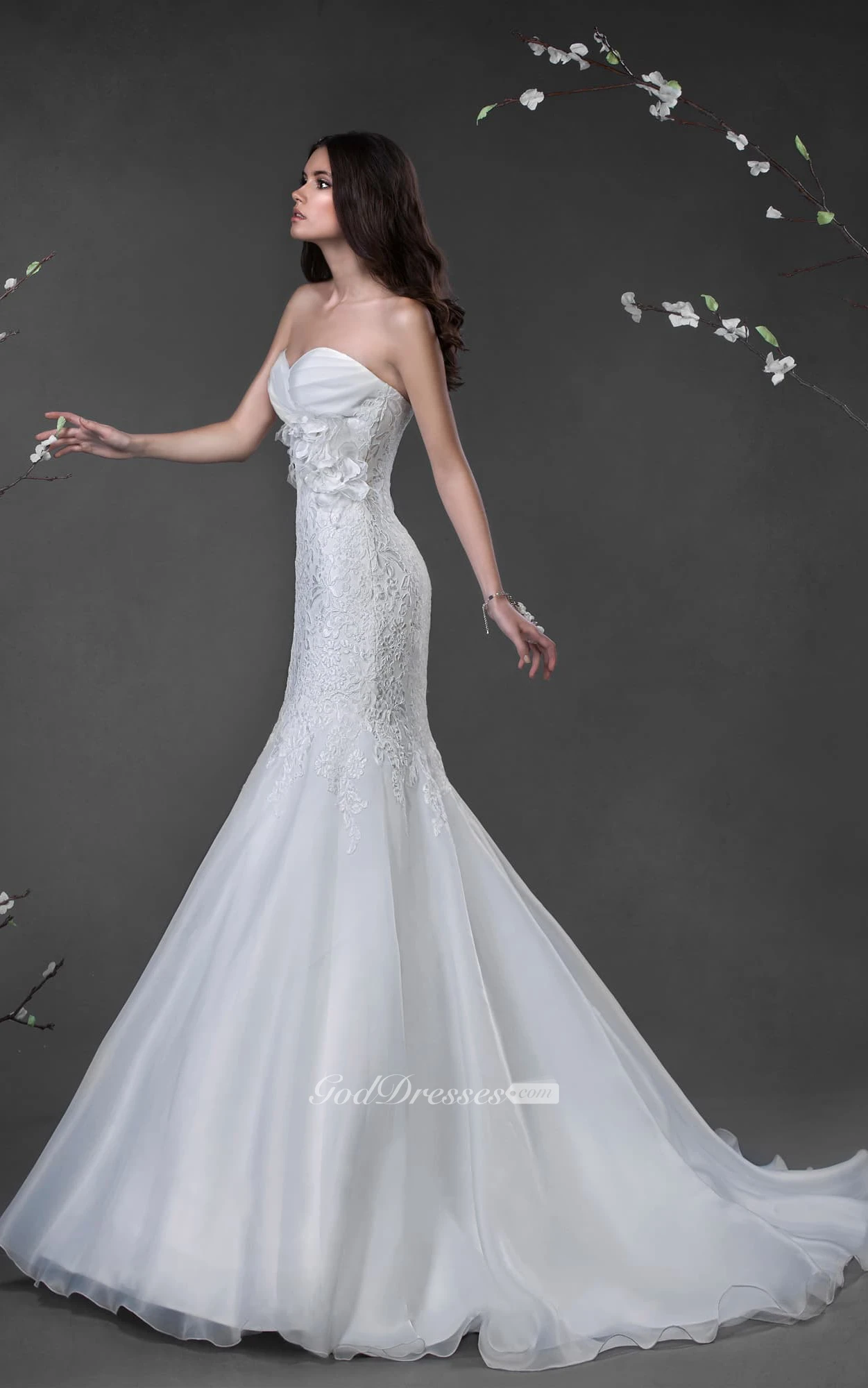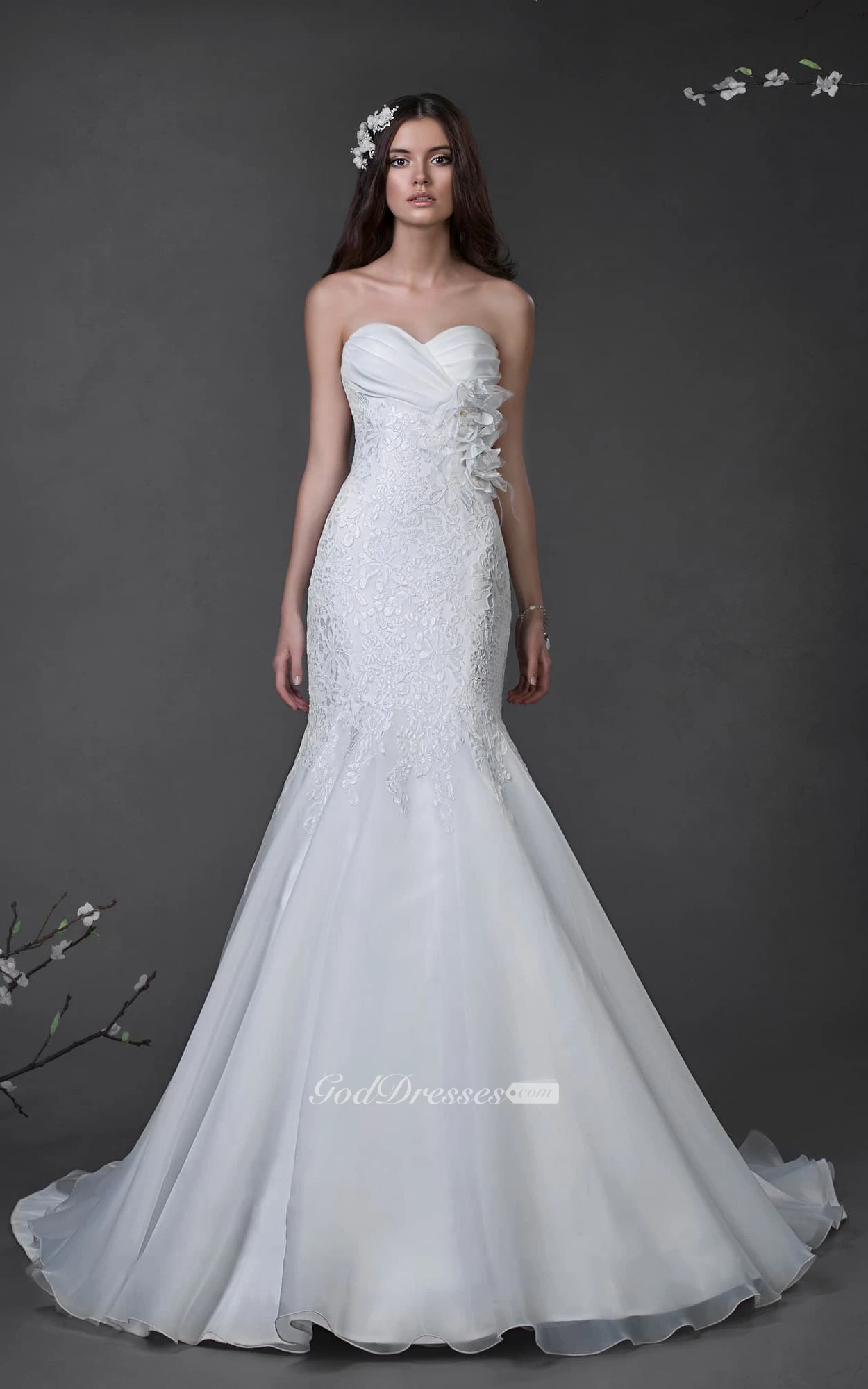 Trumpet Floor-Length Sweetheart Sleeveless Lace Dress With Criss Cross And Flower