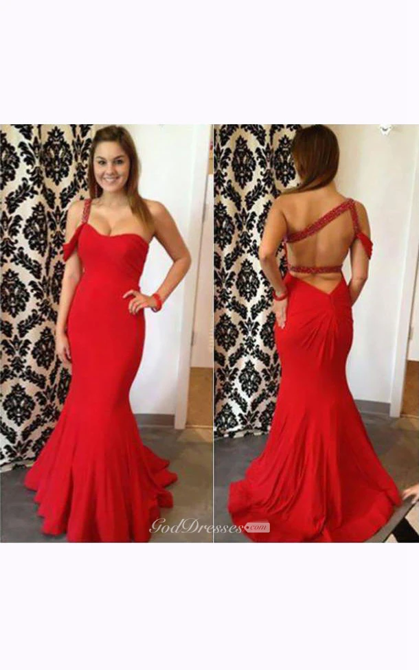 Trumpet Maxi One-shoulder Keyhole Chiffon Lace Dress