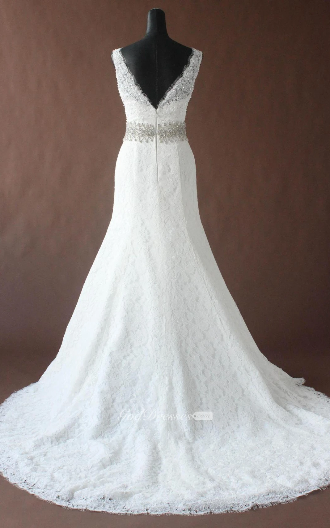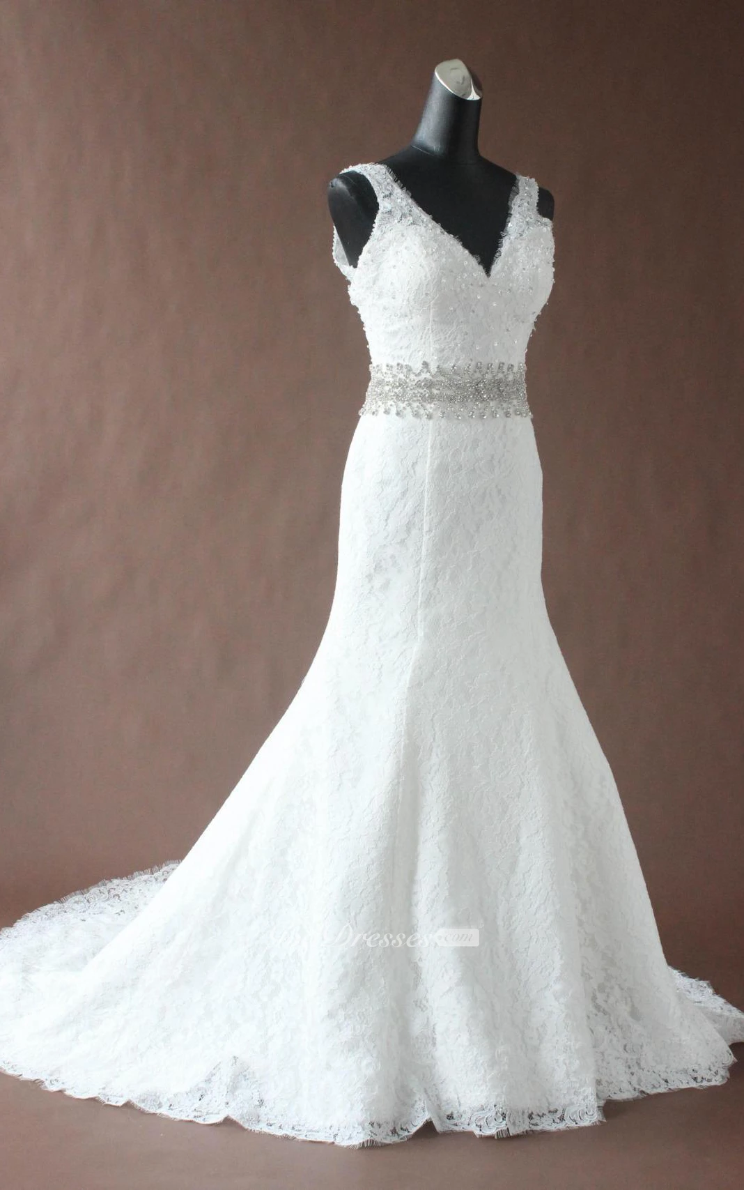 Trumpet Maxi V-Neck Beading Lace Sequins Dress