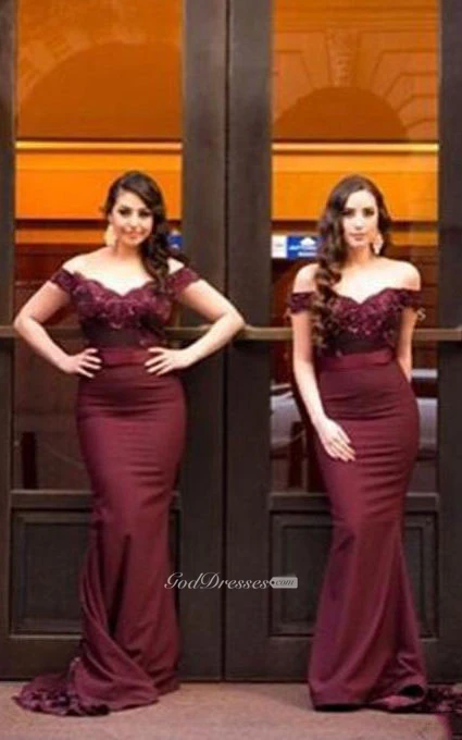 Trumpet Off-the-shoulder Sleeveless Satin Dress