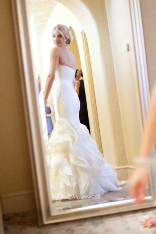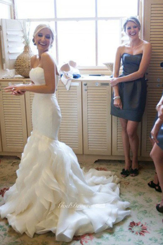 Trumpet Sleeveless Court Train Sweetheart Ruffles Satin Organza Wedding Dresses