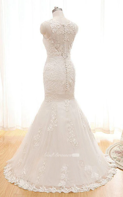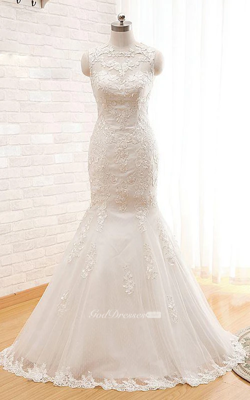 Trumpet Sleeveless Illusion Illusion Illusion Tulle Dress