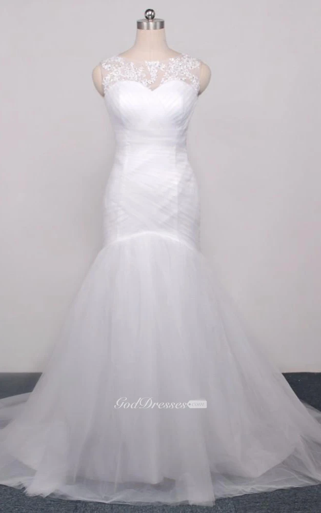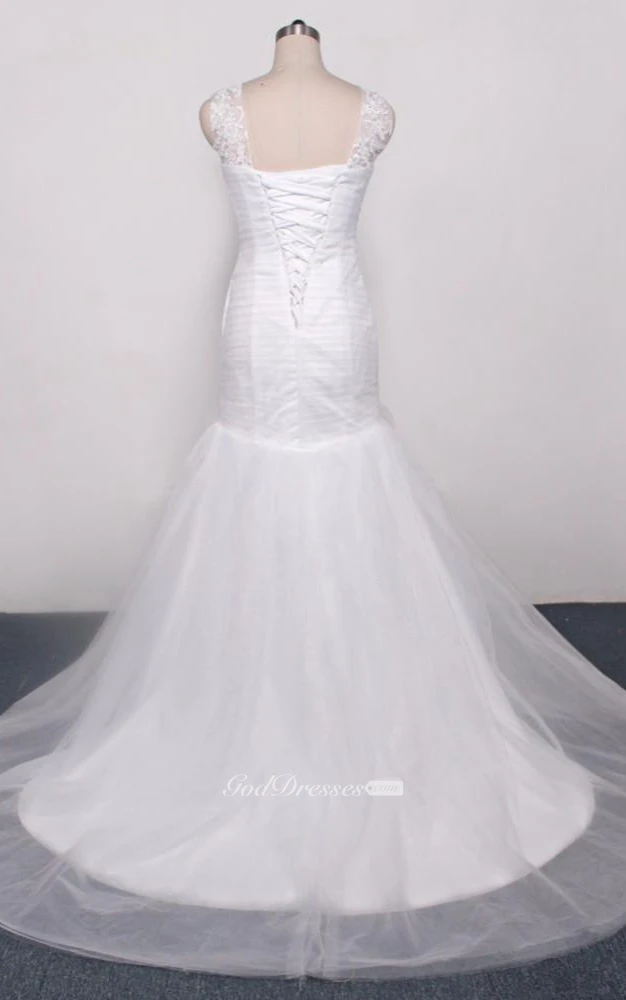 Trumpet Sweetheart Sleeveless Cap Tulle Lace Organza Dress