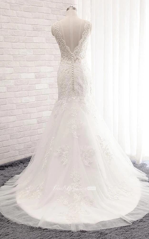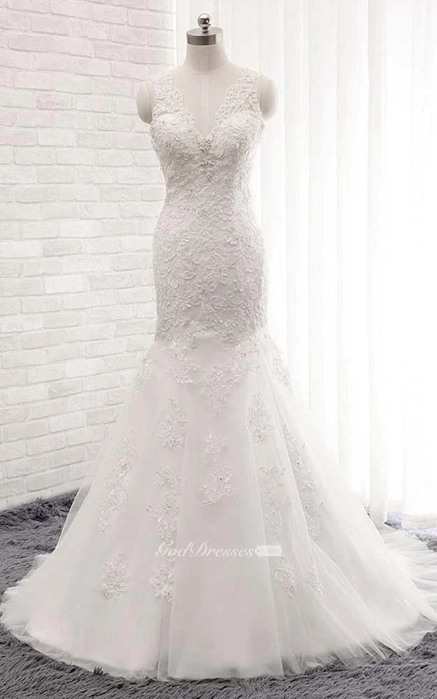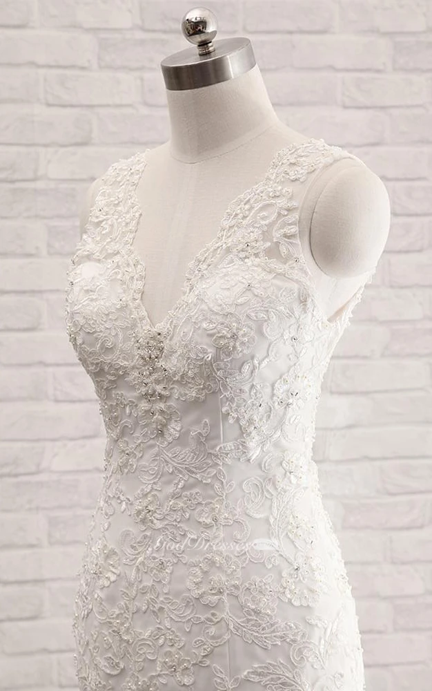 Trumpet V-Neck Sleeveless Backless Lace Dress