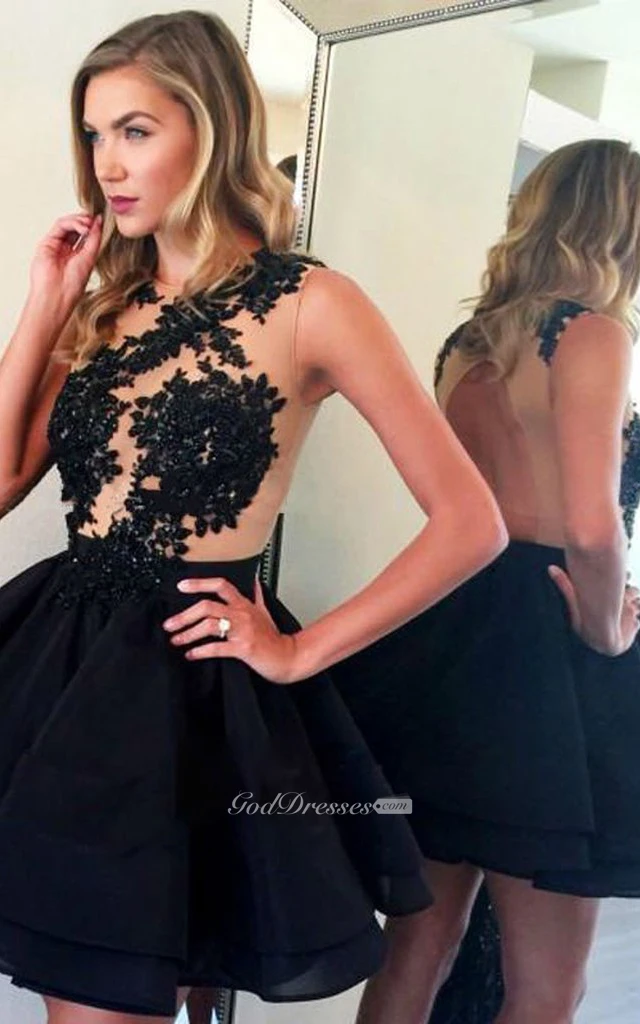 Tulle A Line Keyhole Sleeveless with Appliques Lace and Ruffles Homecoming Dress