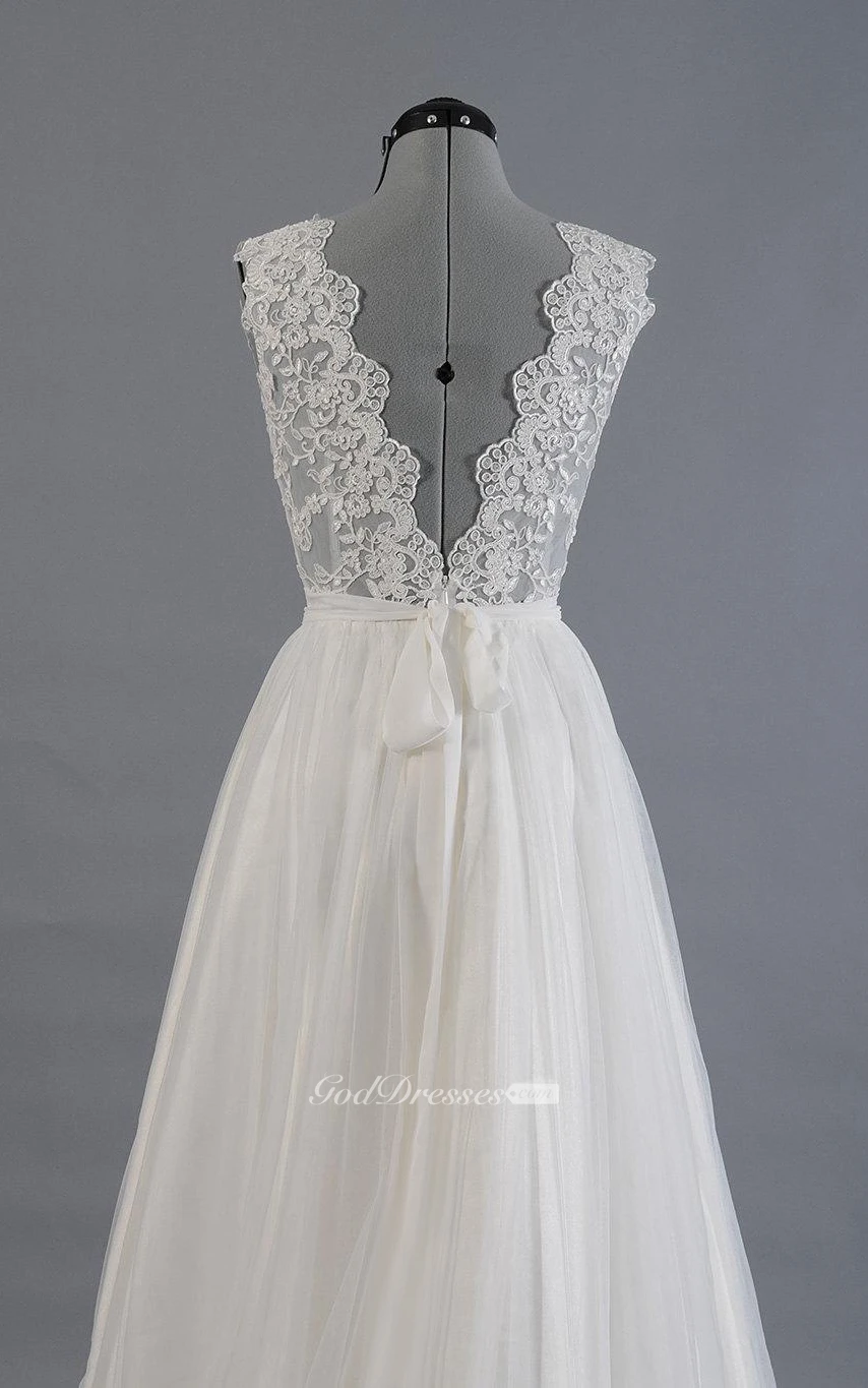 Tulle A-Line Sleeveless Dress With Scalloped-Edge Neckline and Lace Bodice