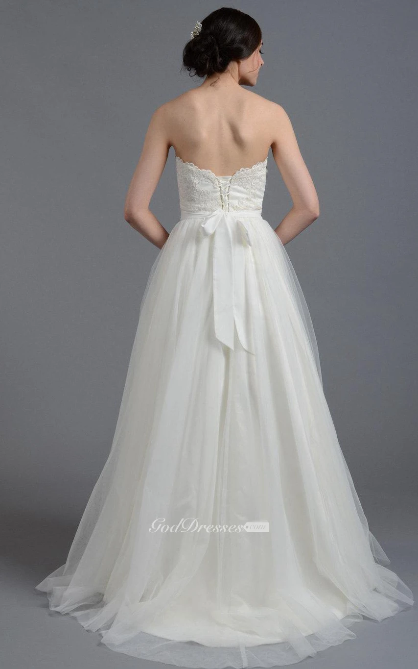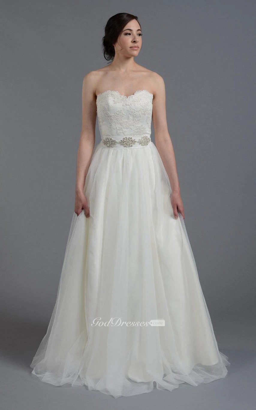 Tulle A-Line Sweetheart Gown With Lace Bodice and Beaded Waist