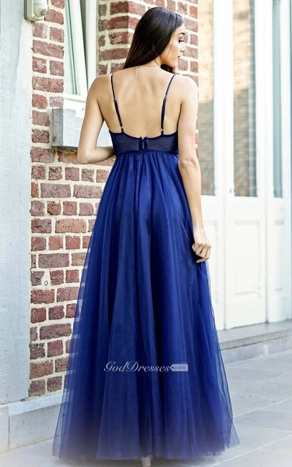 Tulle Floor-length A Line Sleeveless Modern Formal Dress with Appliques