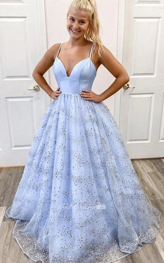 Tulle Floor-length A Line Sleeveless Sexy Formal Dress with Ruffles and Sequins