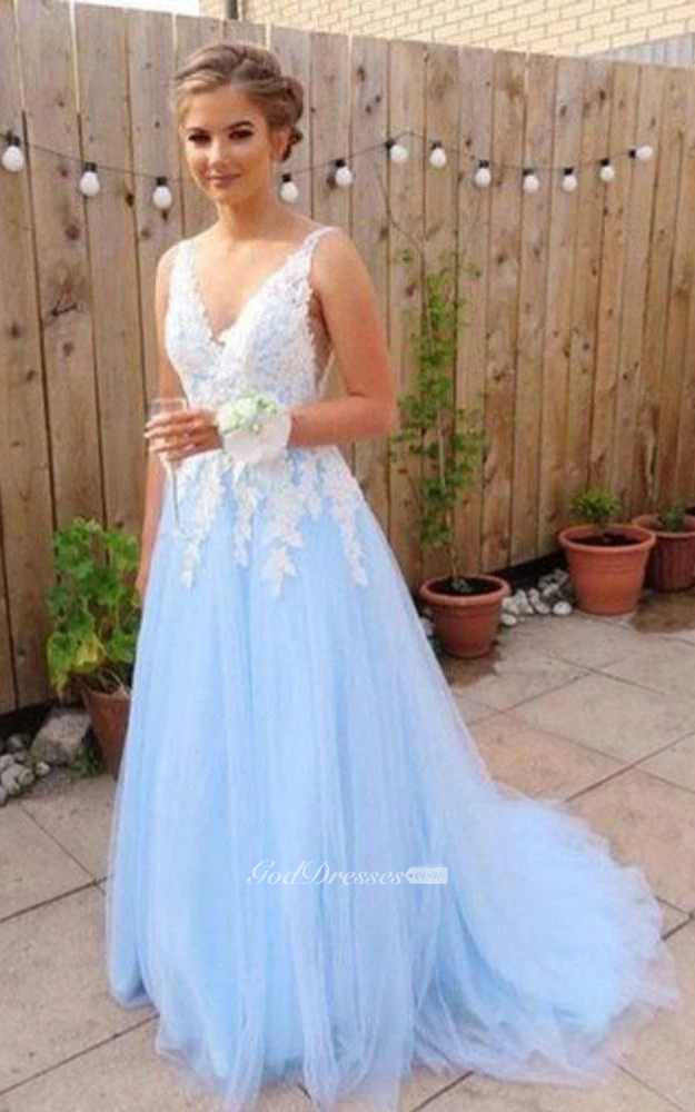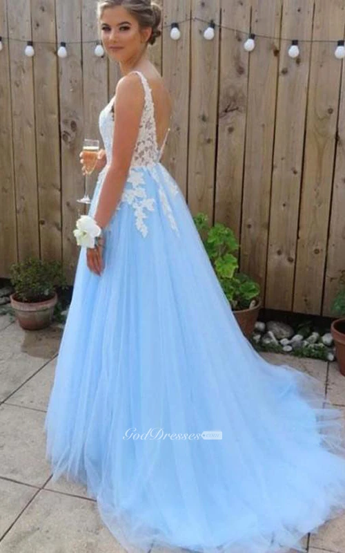 Tulle Floor-length Brush Train A Line Sleeveless Adorable Formal Dress with Appliques