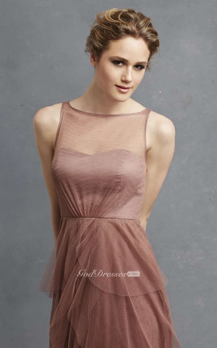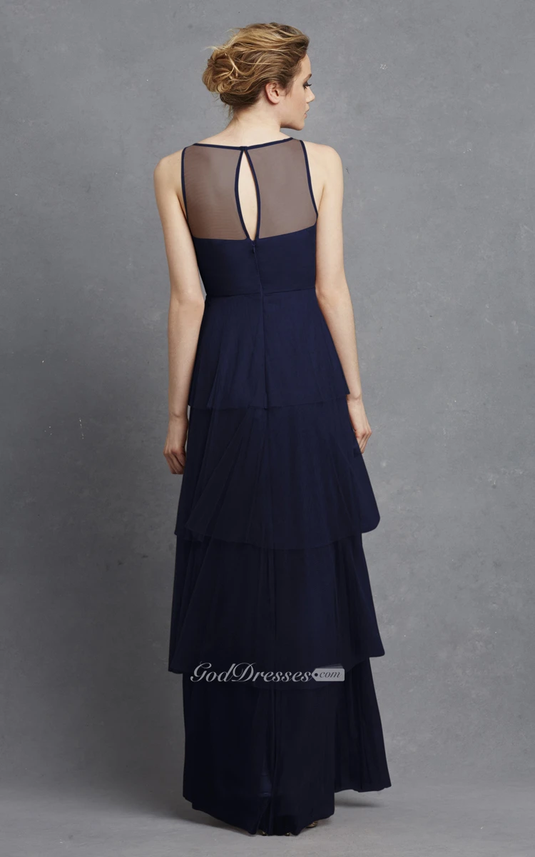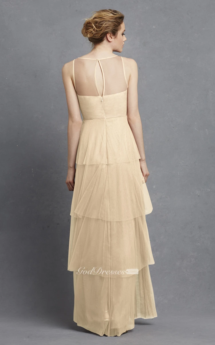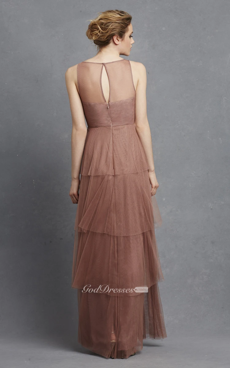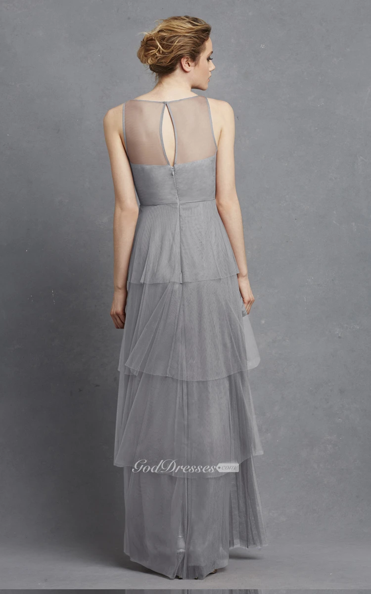 Tulle Sleeveless Long Dress With Keyhole And Tiers