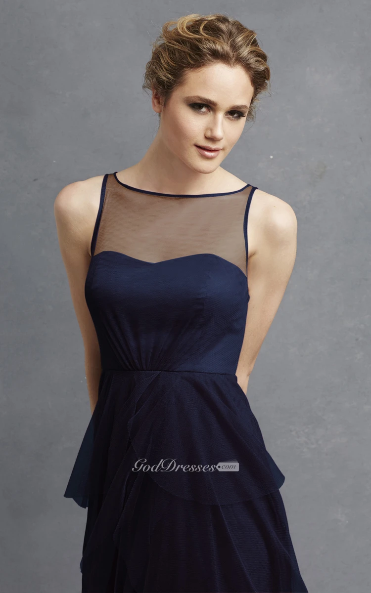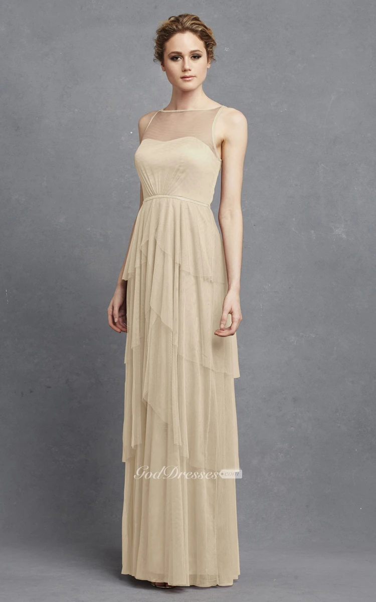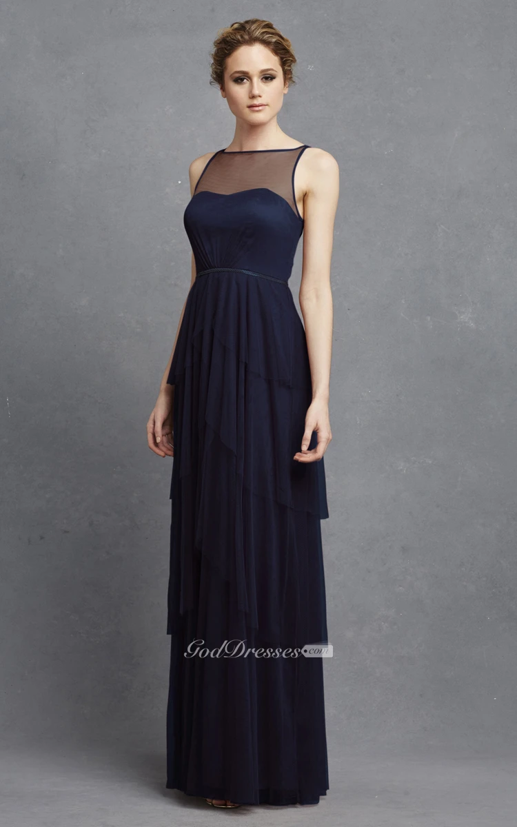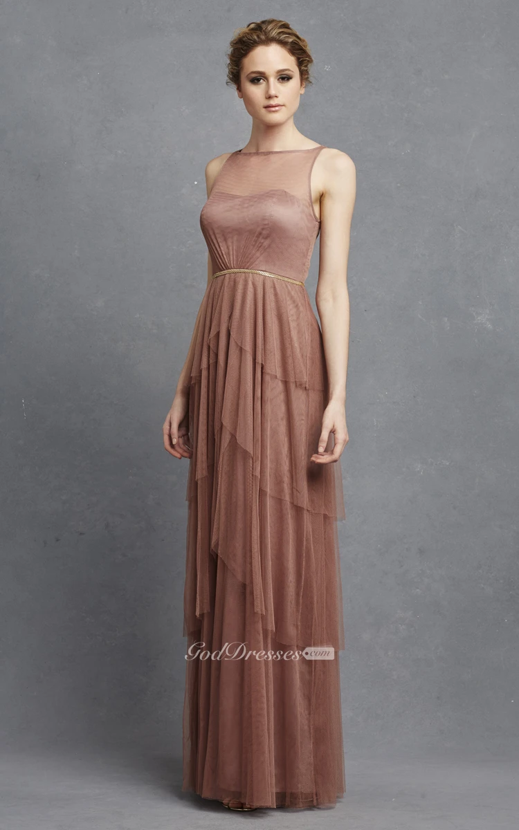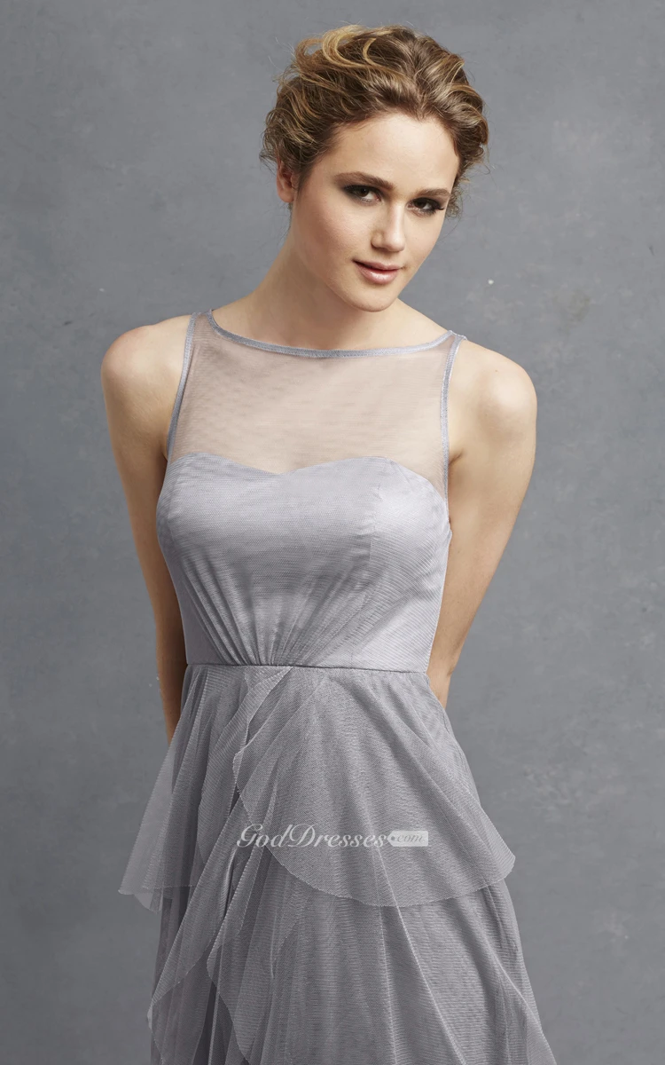 Tulle Sleeveless Long Dress With Keyhole And Tiers