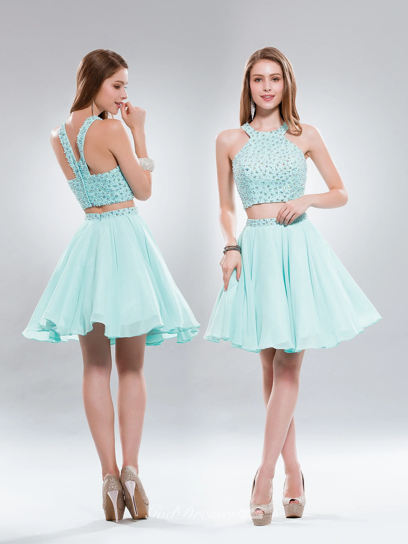 Two-Piece A-Line Mini Scoop-Neck Sleeveless Chiffon Zipper Dress With Beading