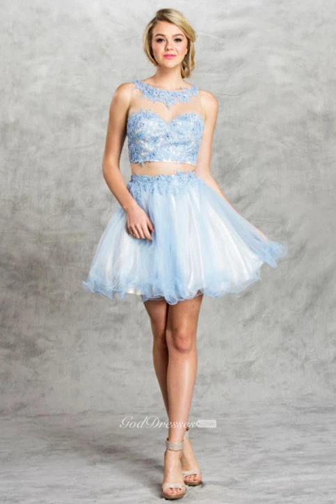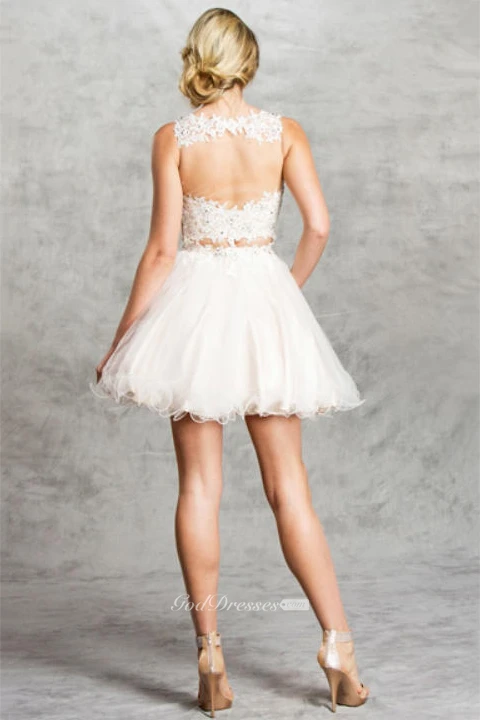 Two-Piece A-Line Short Scoop-Neck Sleeveless Tulle Illusion Dress With Appliques And Ruffles