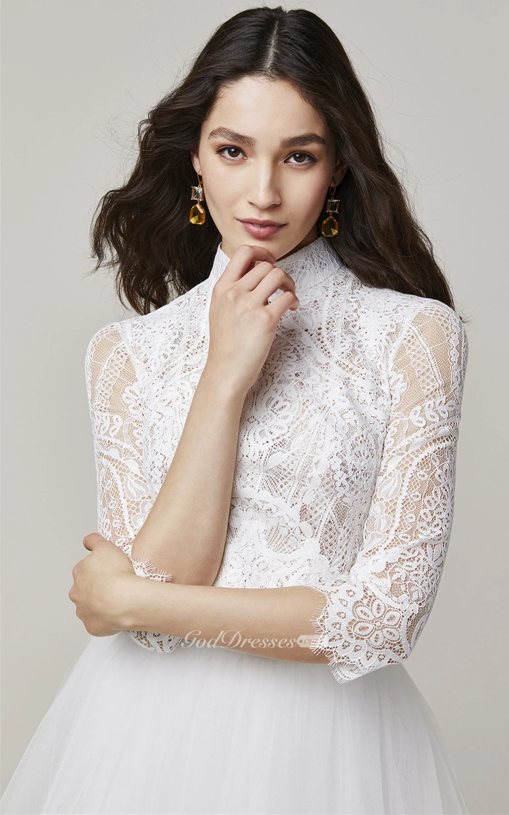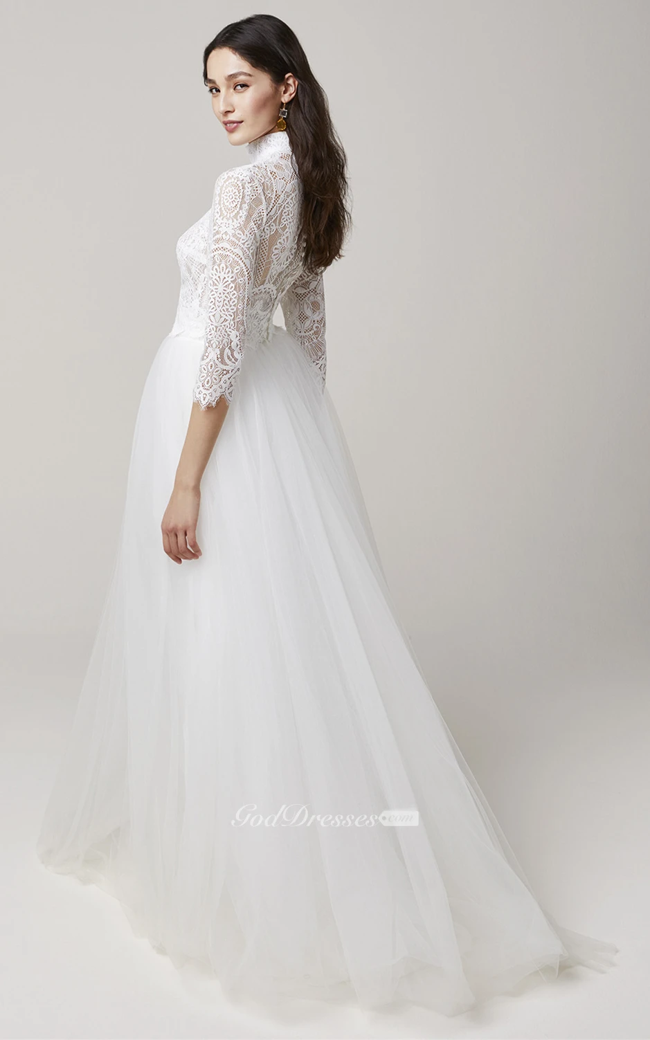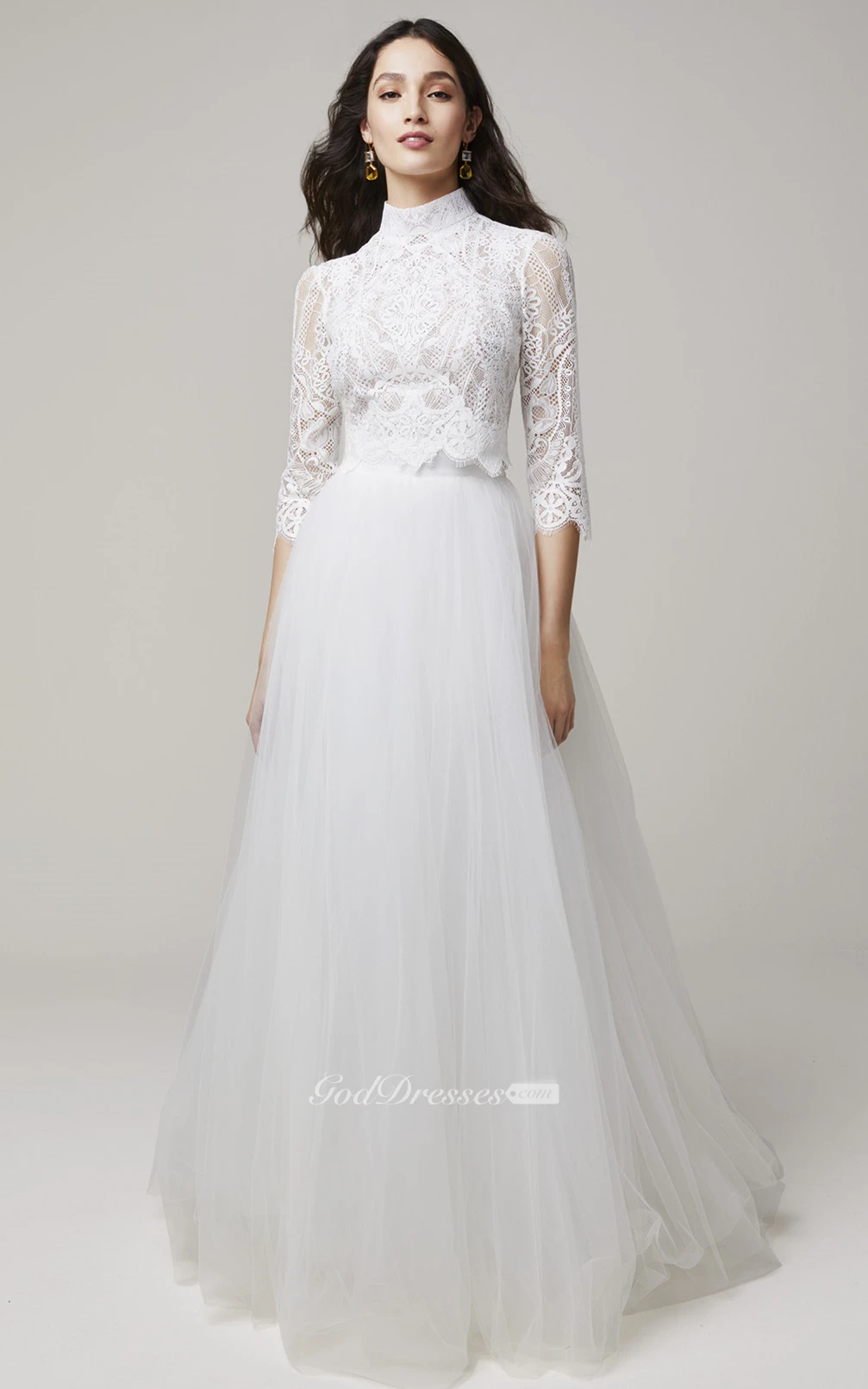 Two Piece Elegant Lace High Neck Wedding Dress with Train