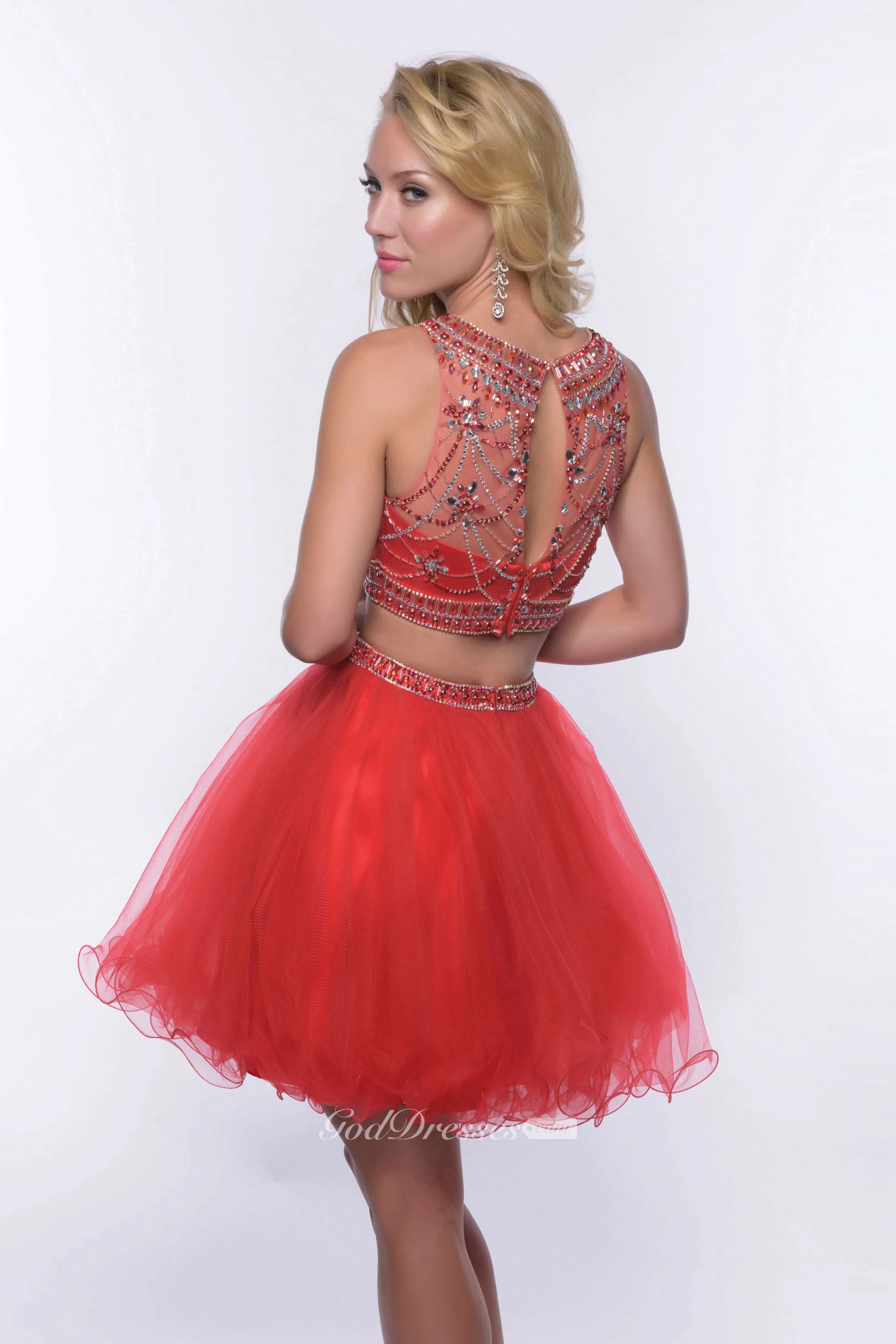 Two Piece Sleeveless Jewel Neck Tulle Short Homecoming Dress With Glimmering Bodice