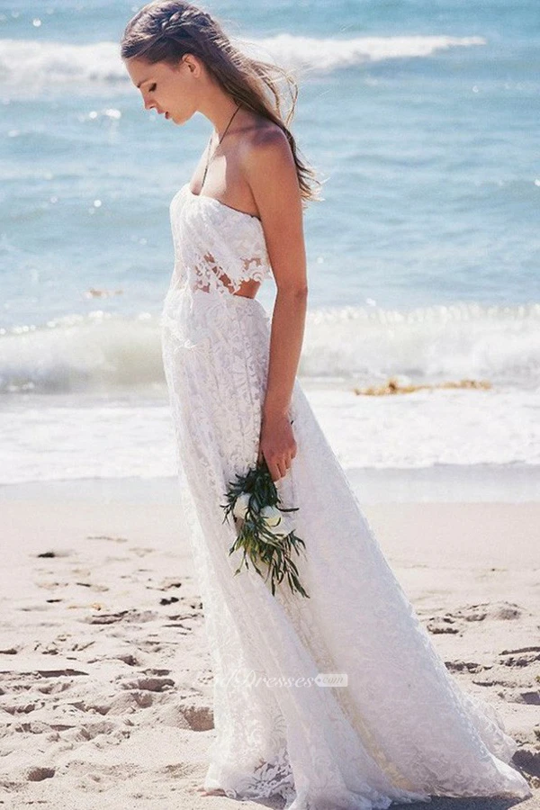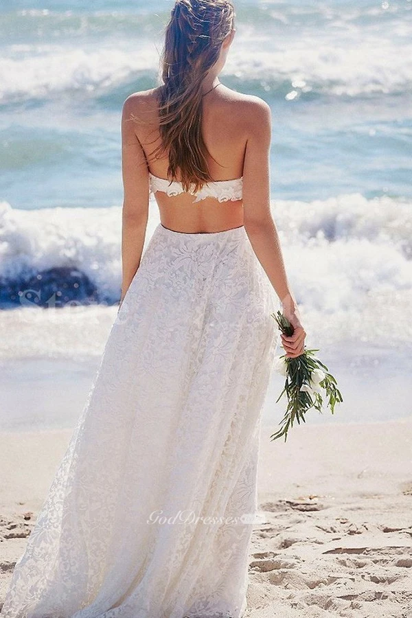 Two Piece Strapless Floor-length Lace Beach Boho Wedding Dress Wedding Dresses