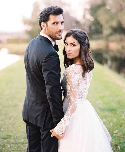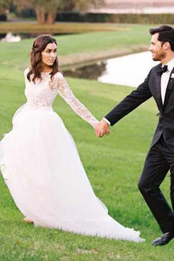 Two Pieces Long Sleeves Lace Bohemian Modest Wedding Dress