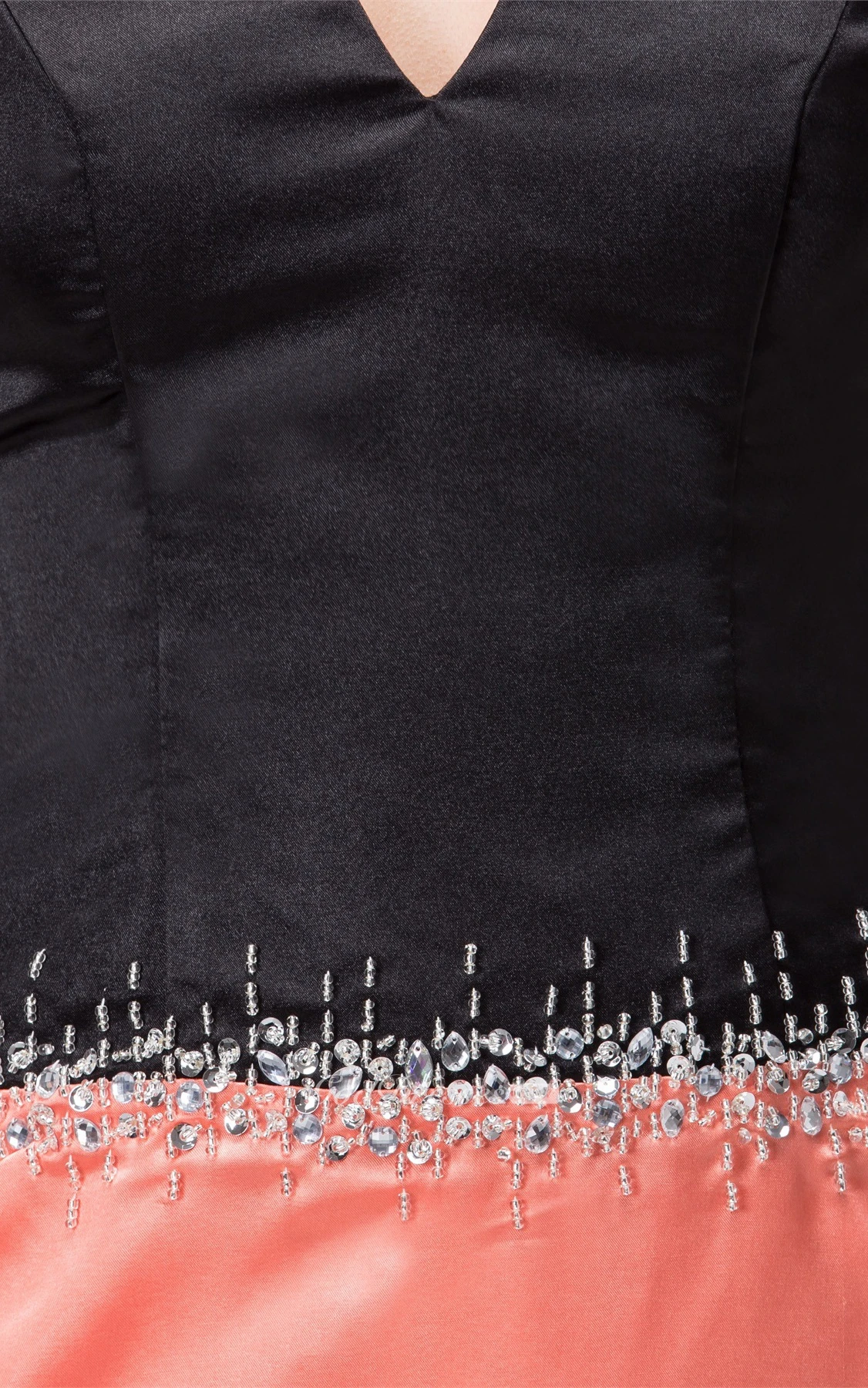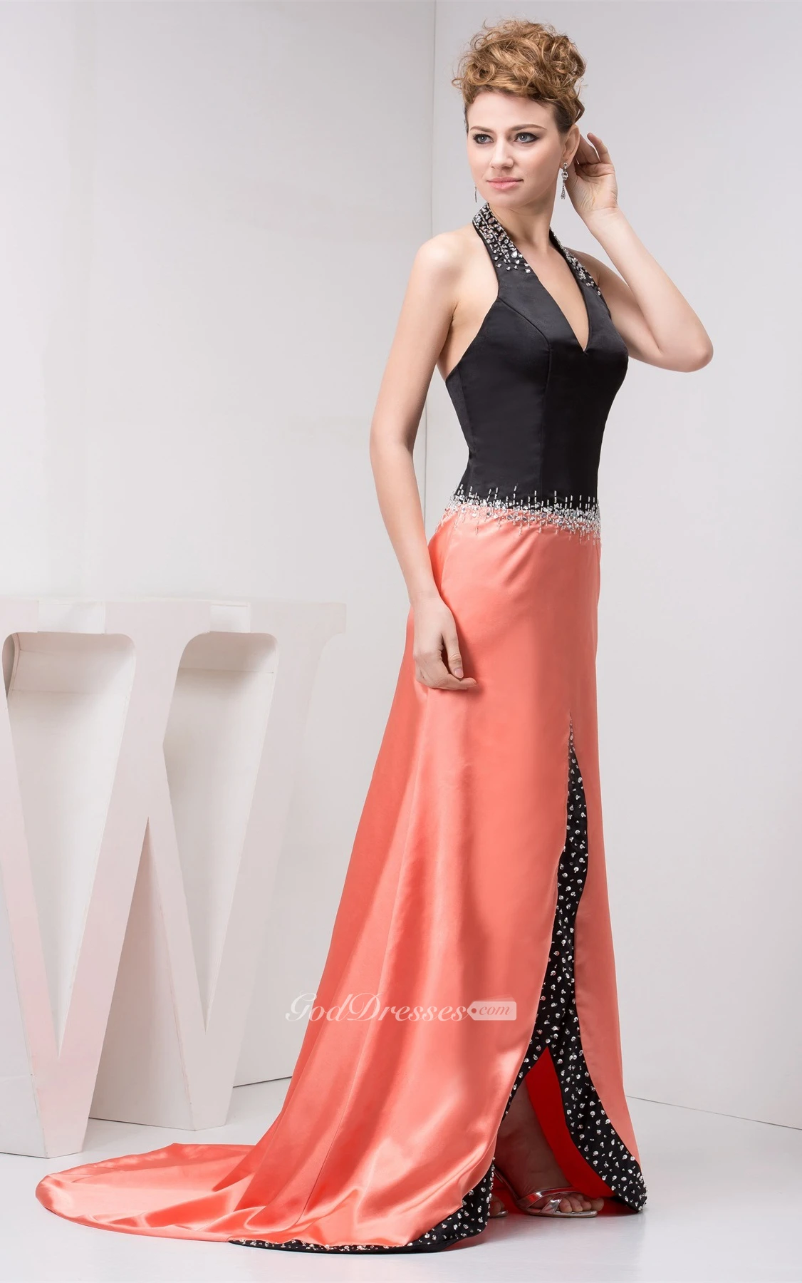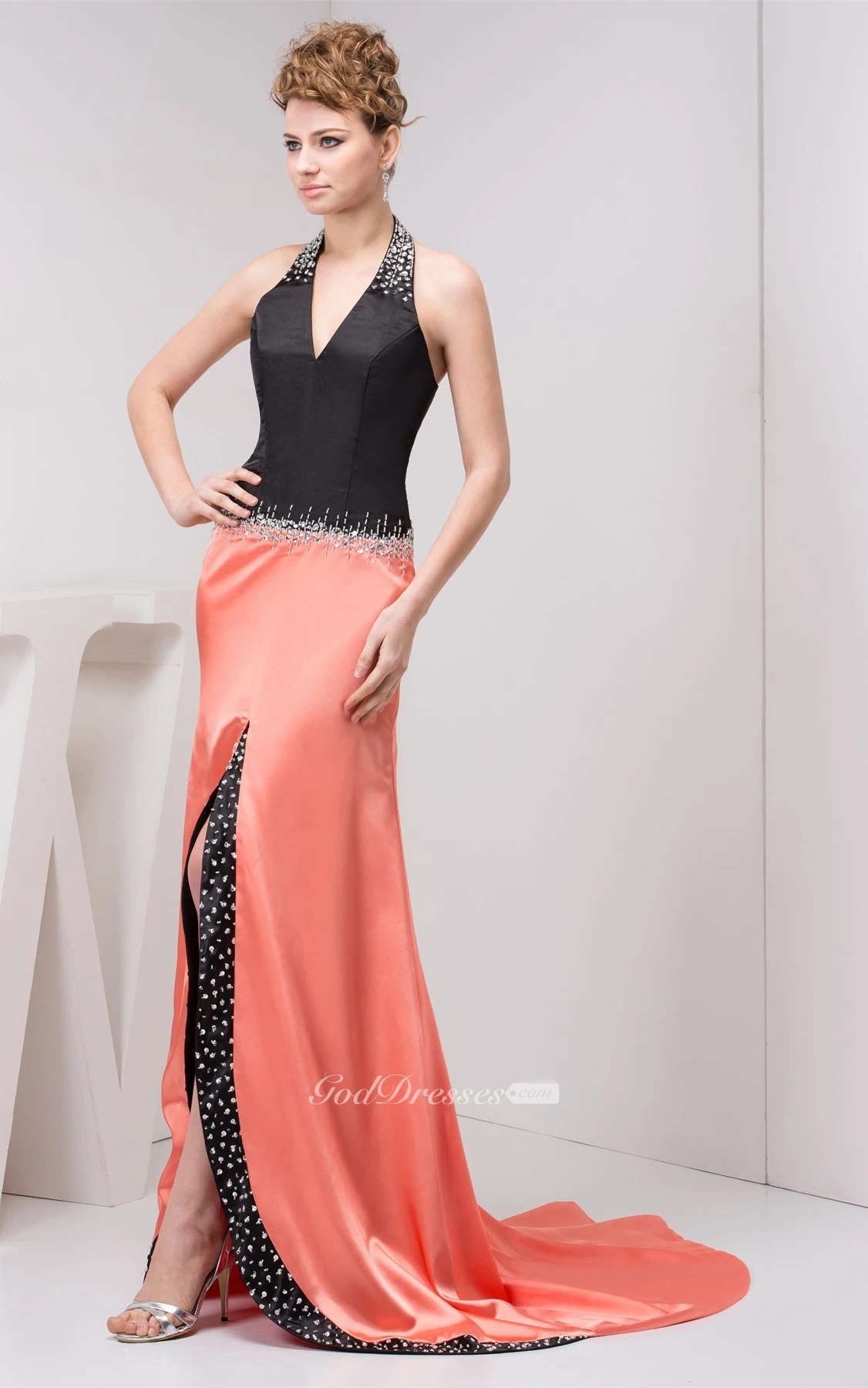Two-Tone Floor-Length Front-Split Halter and Dress With Beading