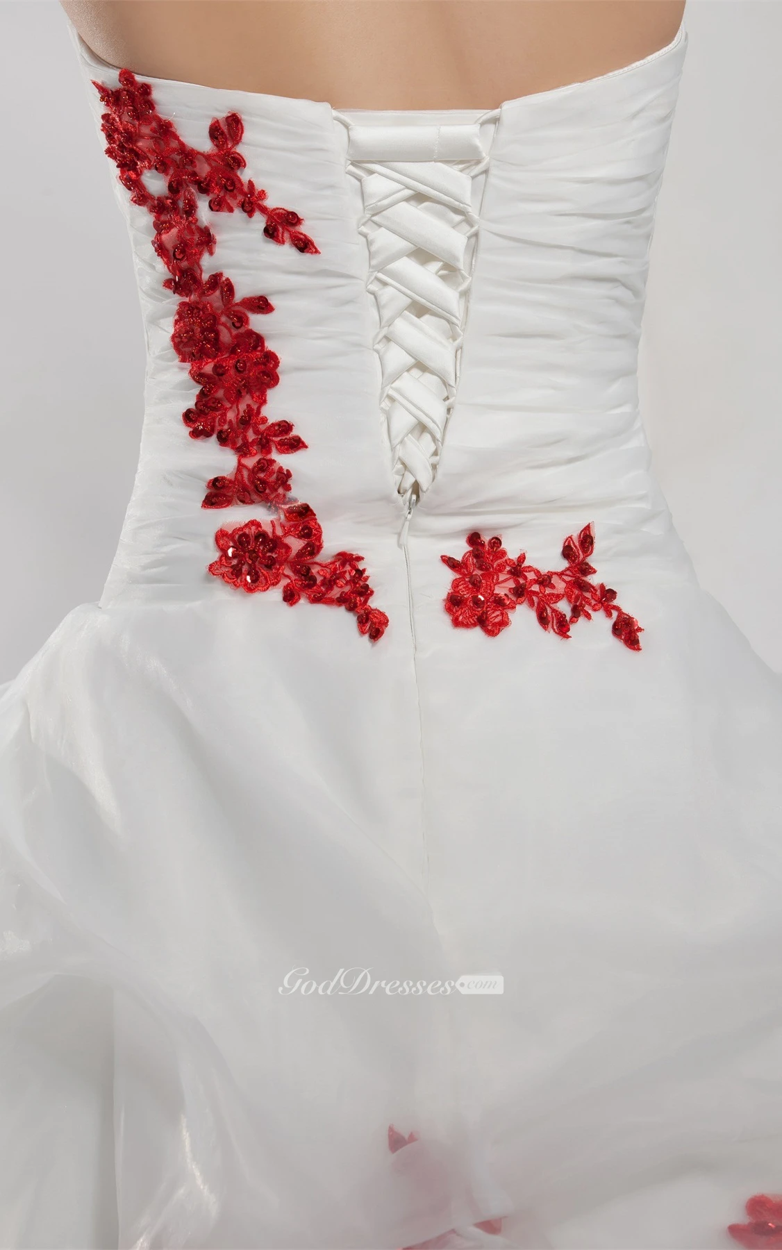 Two-Tone Ruched Tulle Sleeveless Appliques and Ball-Gown With Flower