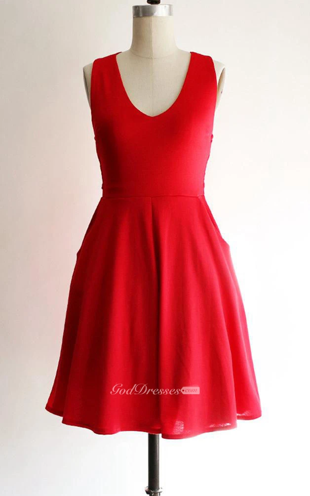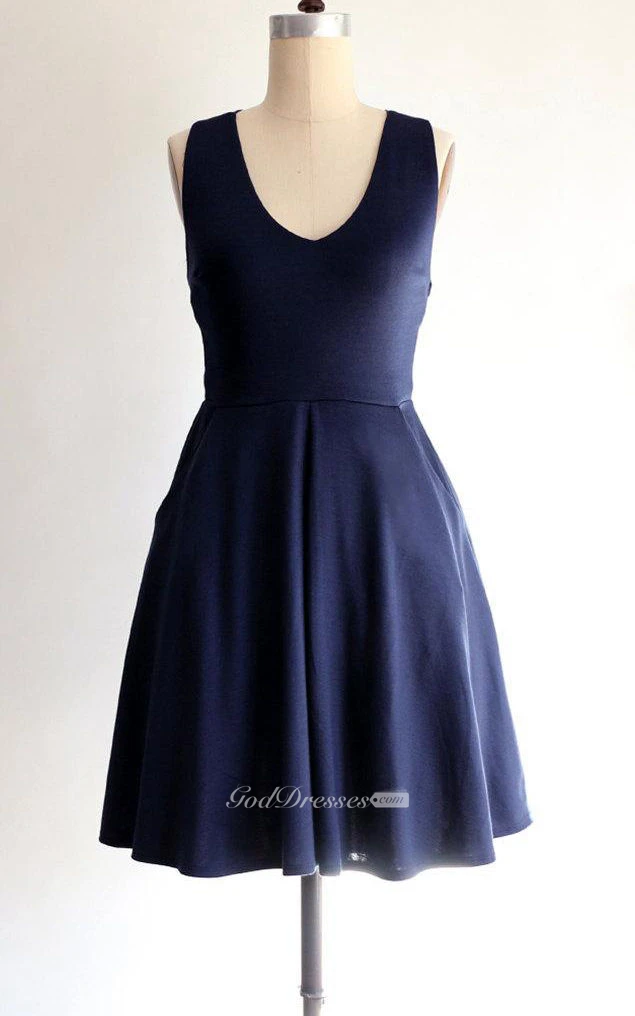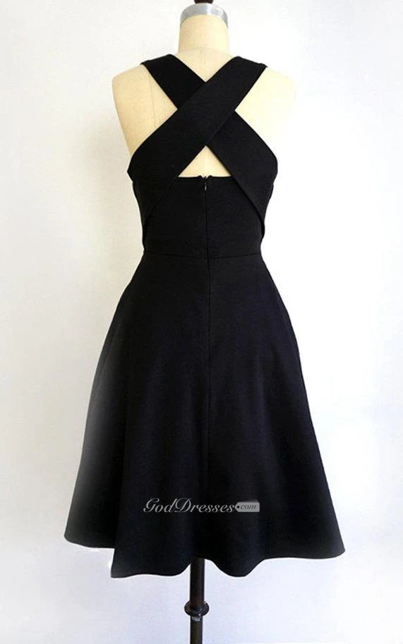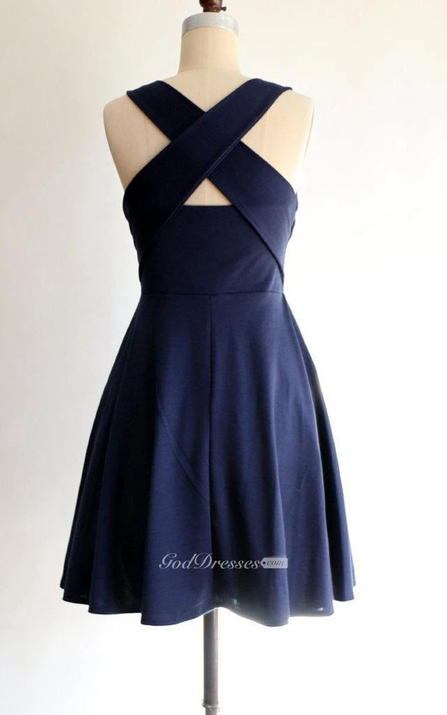 U Neck Sleeveless A-line Pleated Knee Length Jersey Dress Criss Cross Back