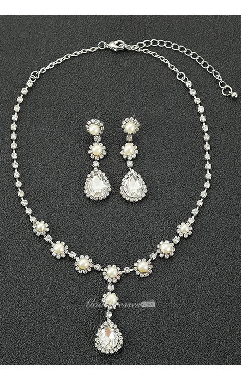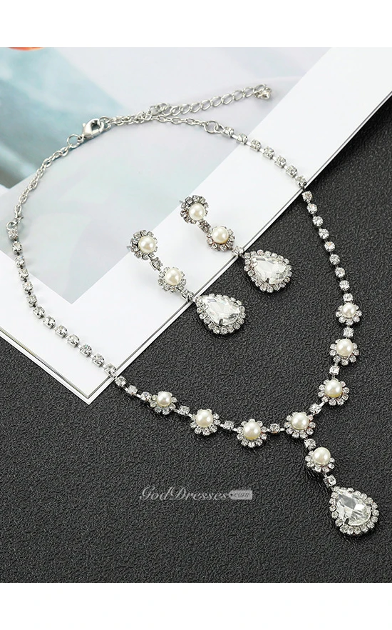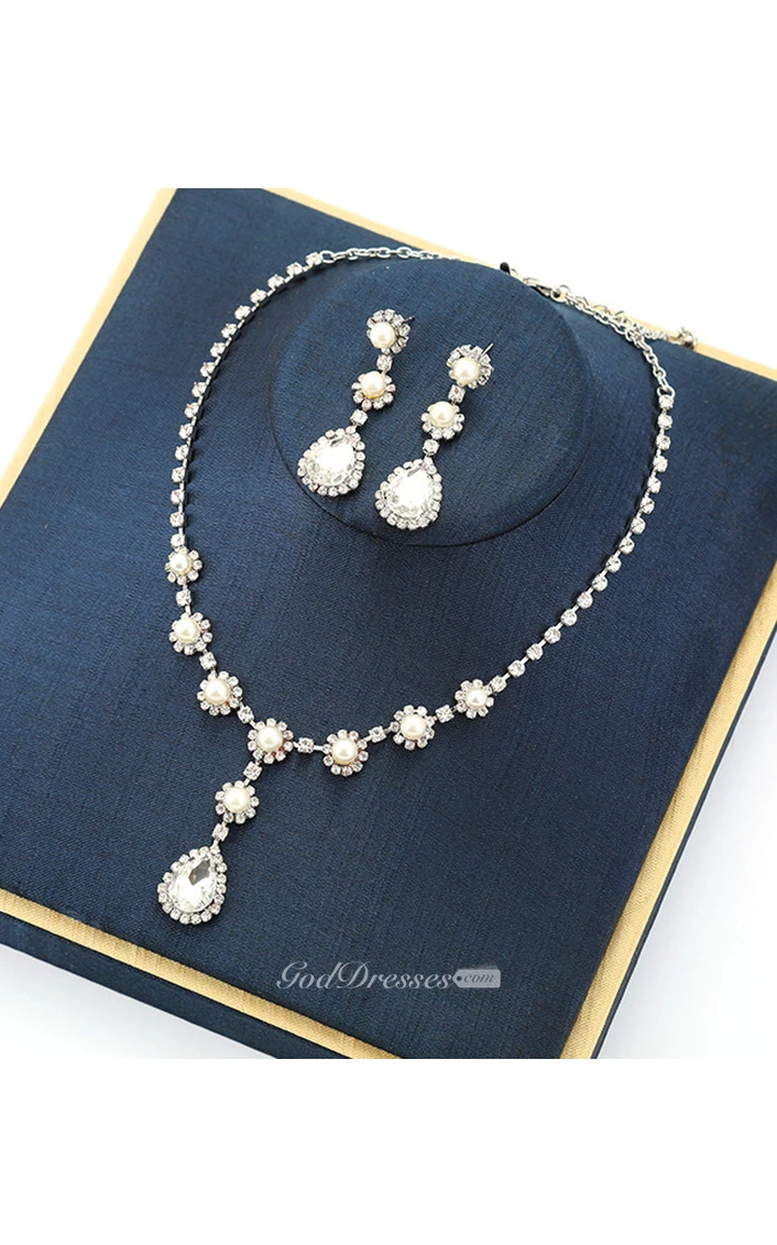Unique Flower Shaped Rhinestone Necklace and Earrings Jewelry Set
