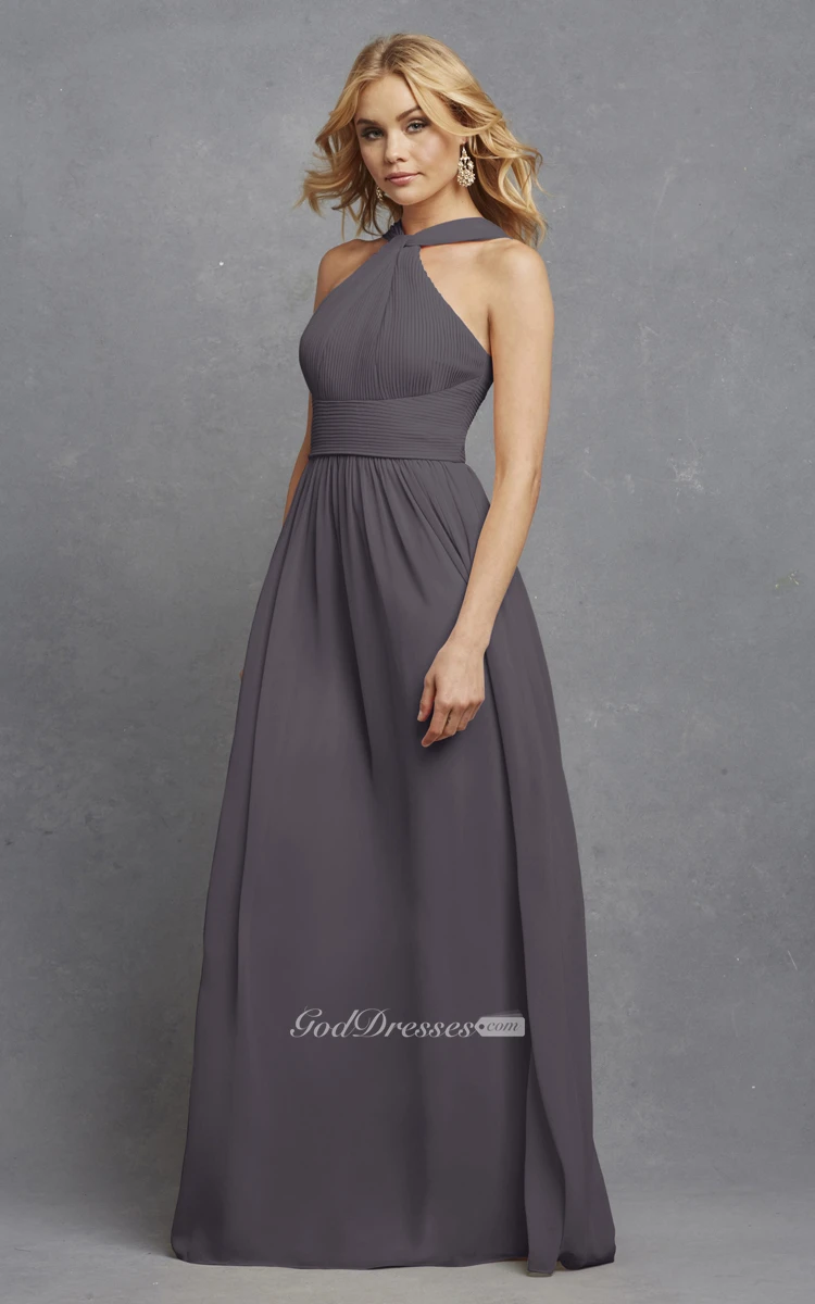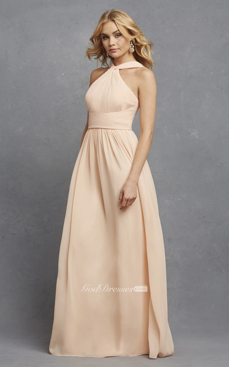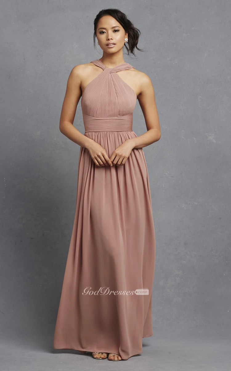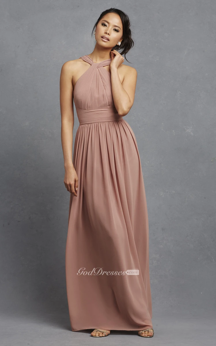 Unique Sleeveless Long-Chiffon Dress With Ruching