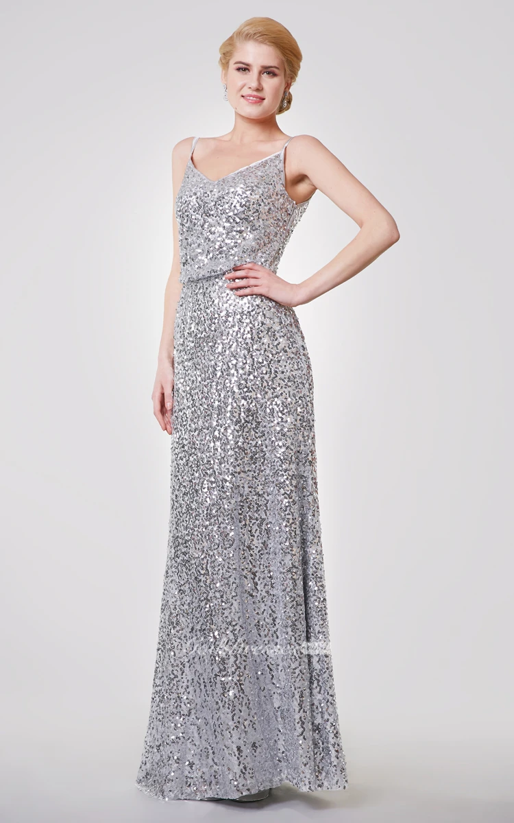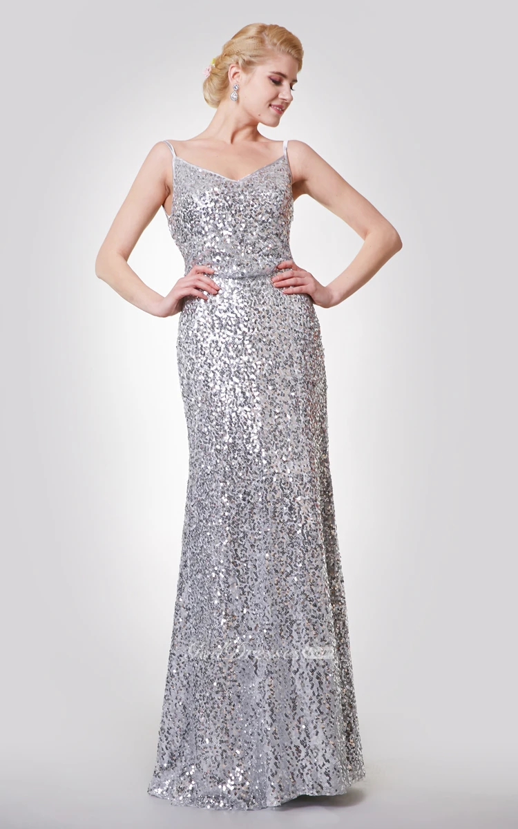 Unique Spaghetti Straps V-neck Sequined Long Dress