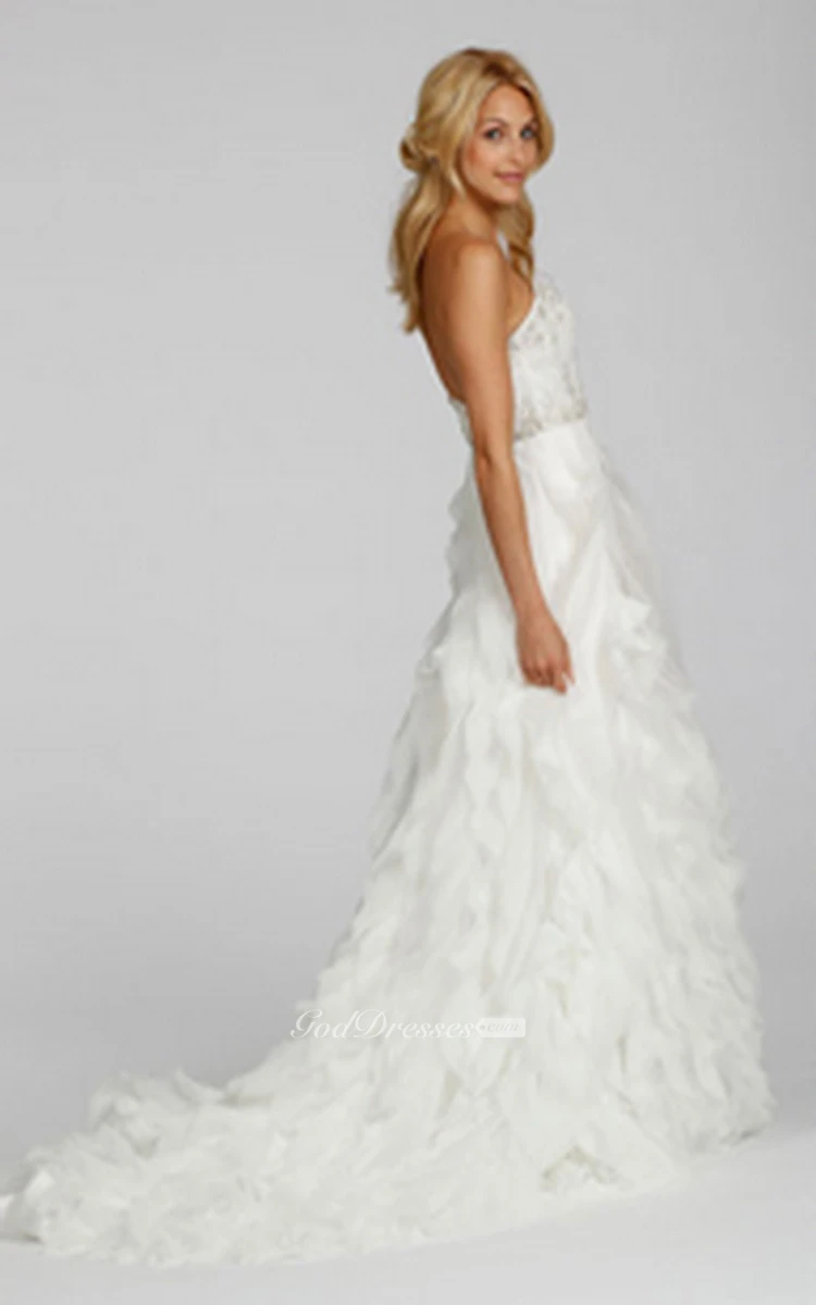 Unique Sweetheart Ruffled Dress With Embroidered Bodice
