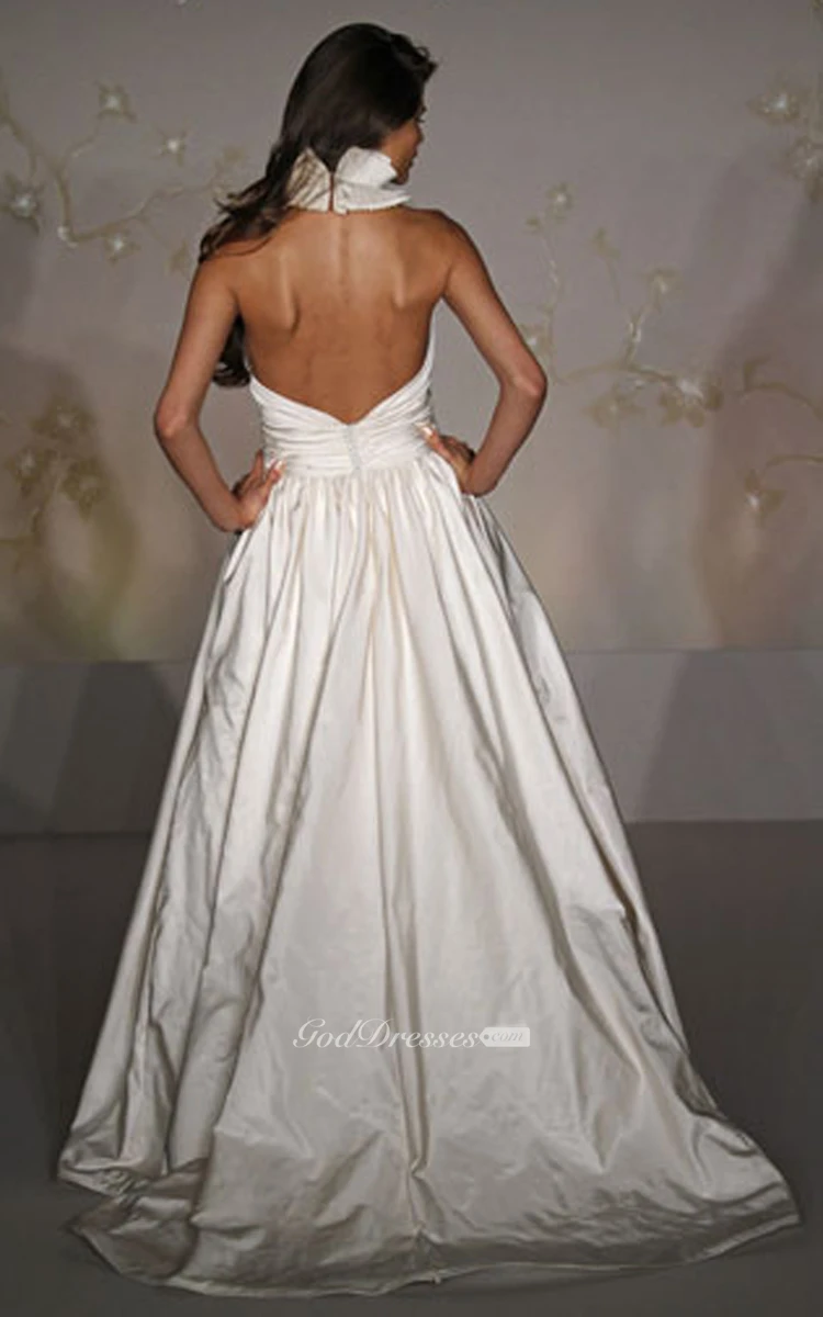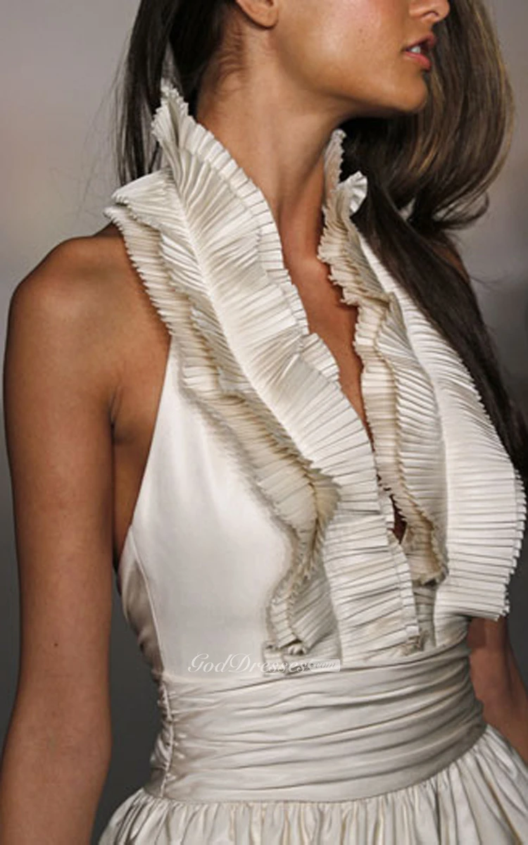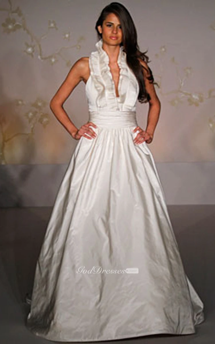 Unique Taffeta Ball Gown With Pleated Ruffle Halter Neckline