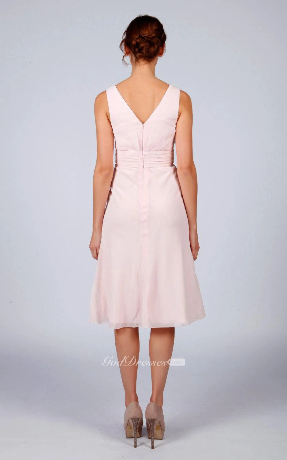 V Back V Back A-line Chiffon Short Dress Pale Pink