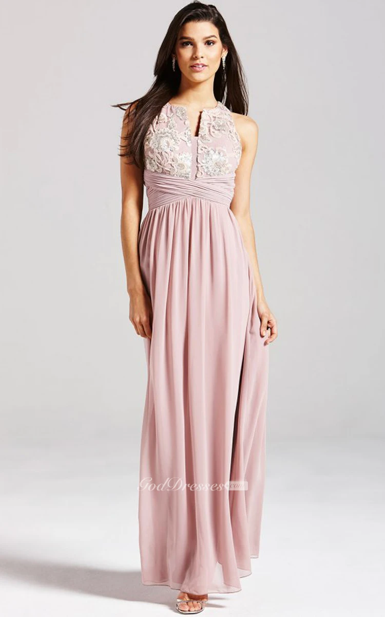 V-Cut Neckline Sleeveless Dress With Lace Detail
