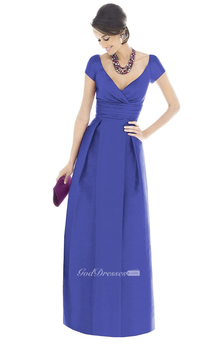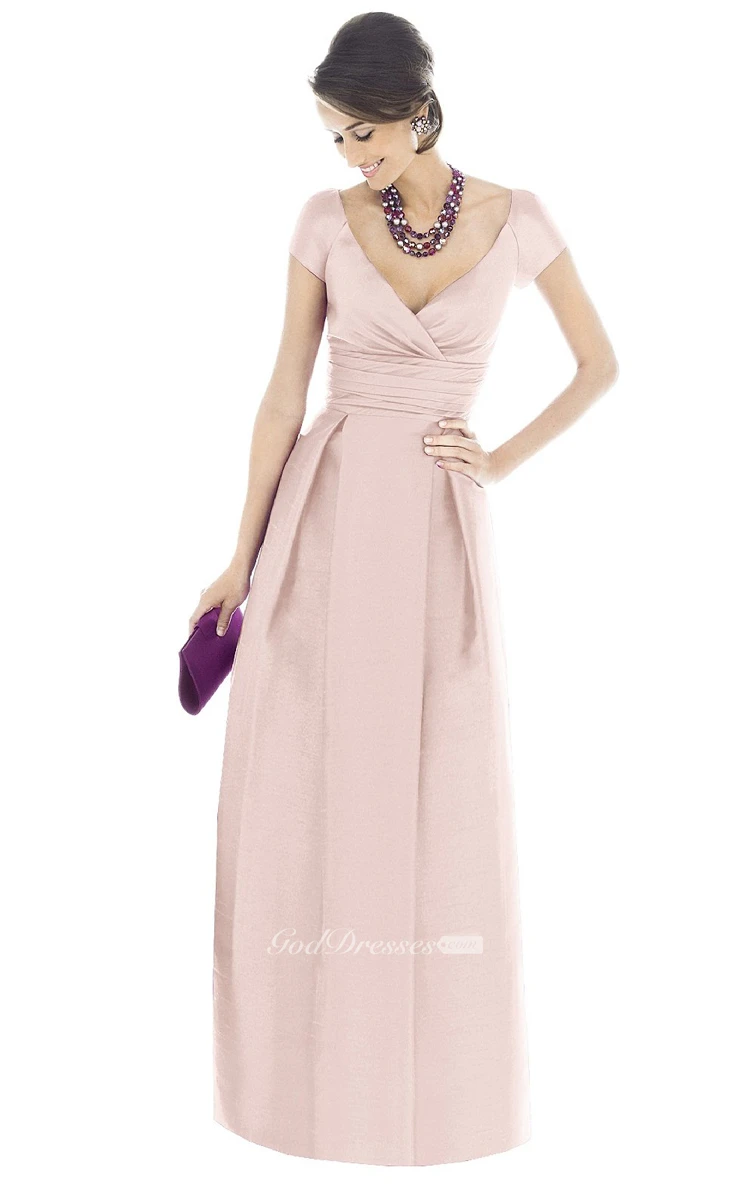 V-Neck A-Line Chic Gown With Short Sleeves