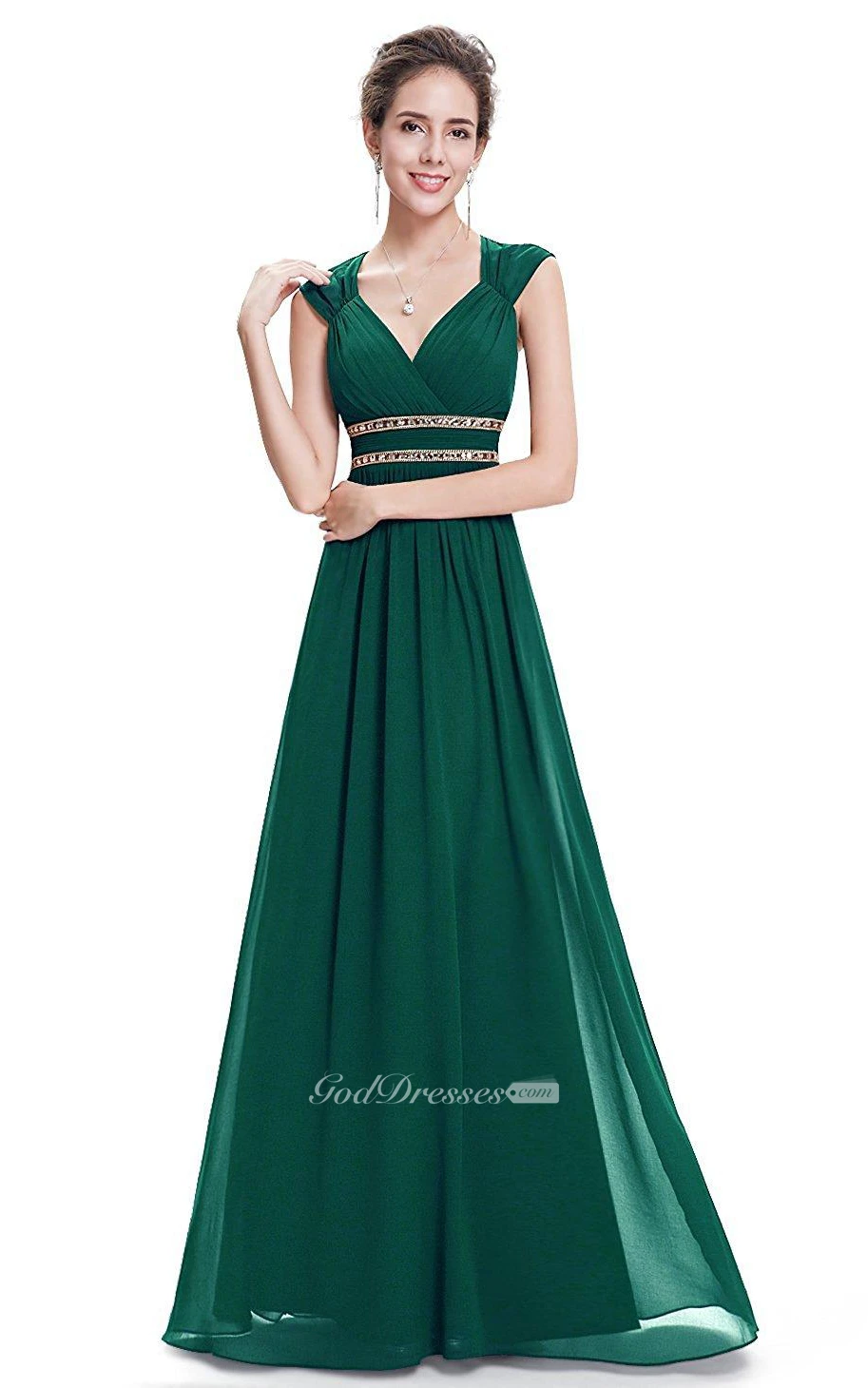 V-neck A-line Floor-length Chiffon Dress with Keyhole Back
