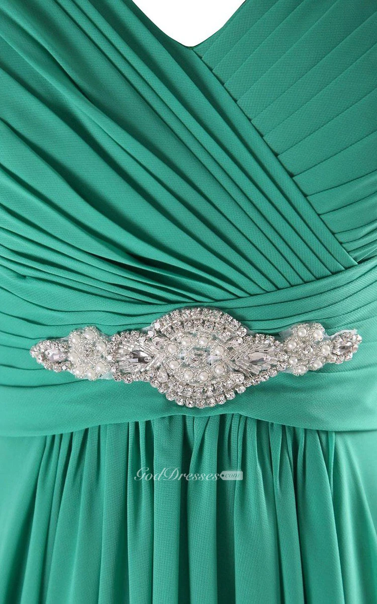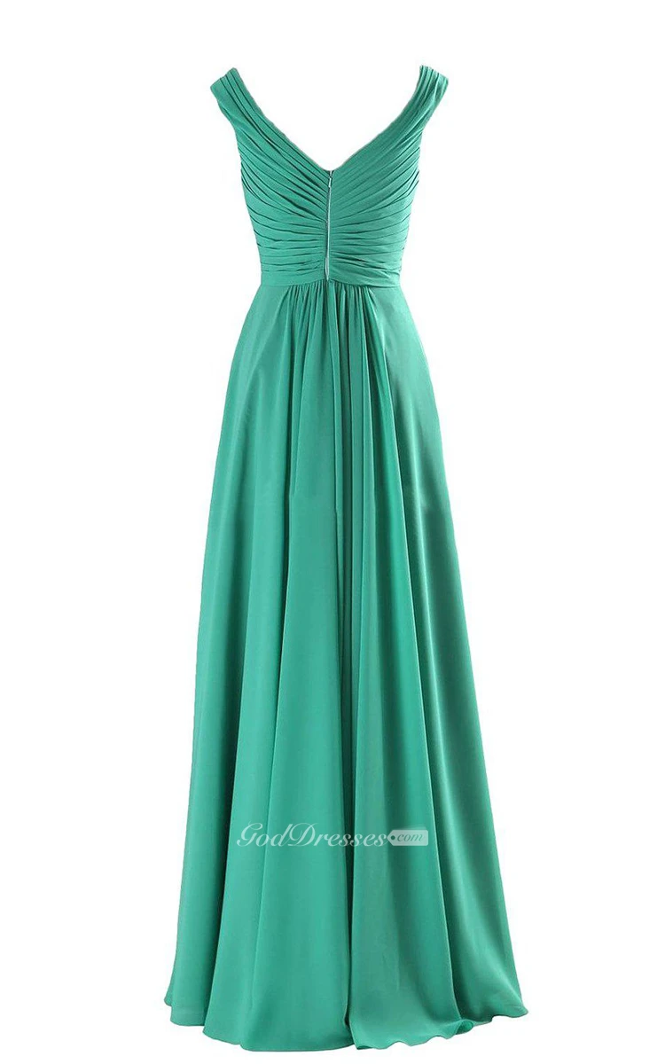 V-neck A-line Long Chiffon Gown With Pleats and Beadings