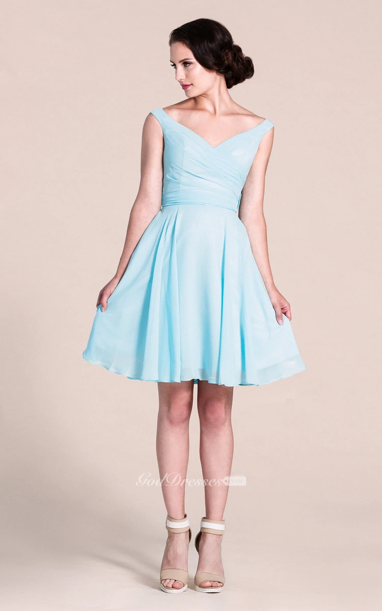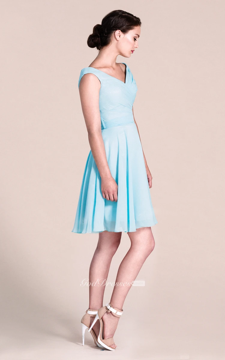 V-neck A-line Short Dress With Bow Tie