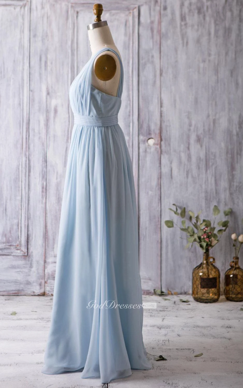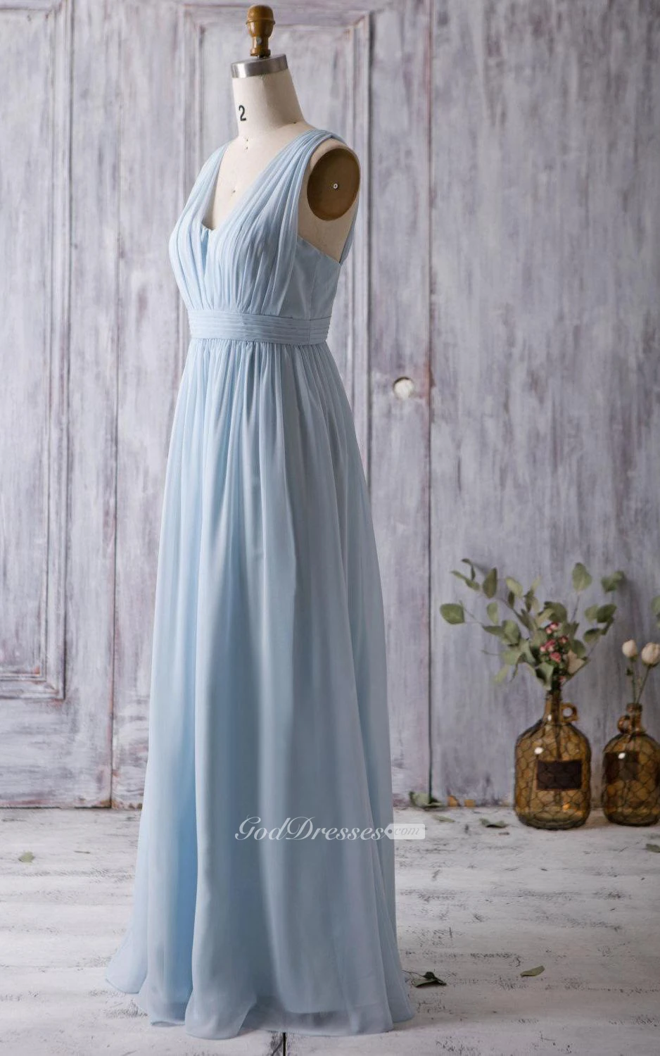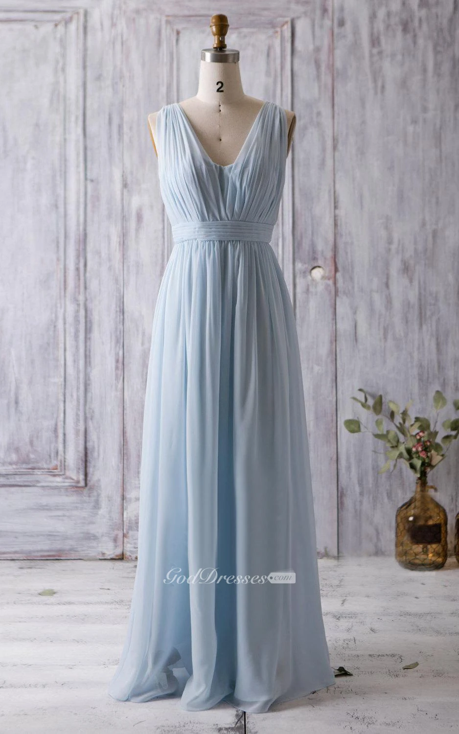 V Neck Backless Empire Waist Pleated A-line Chiffon Long Dress