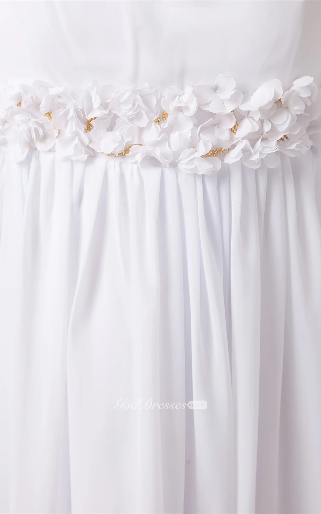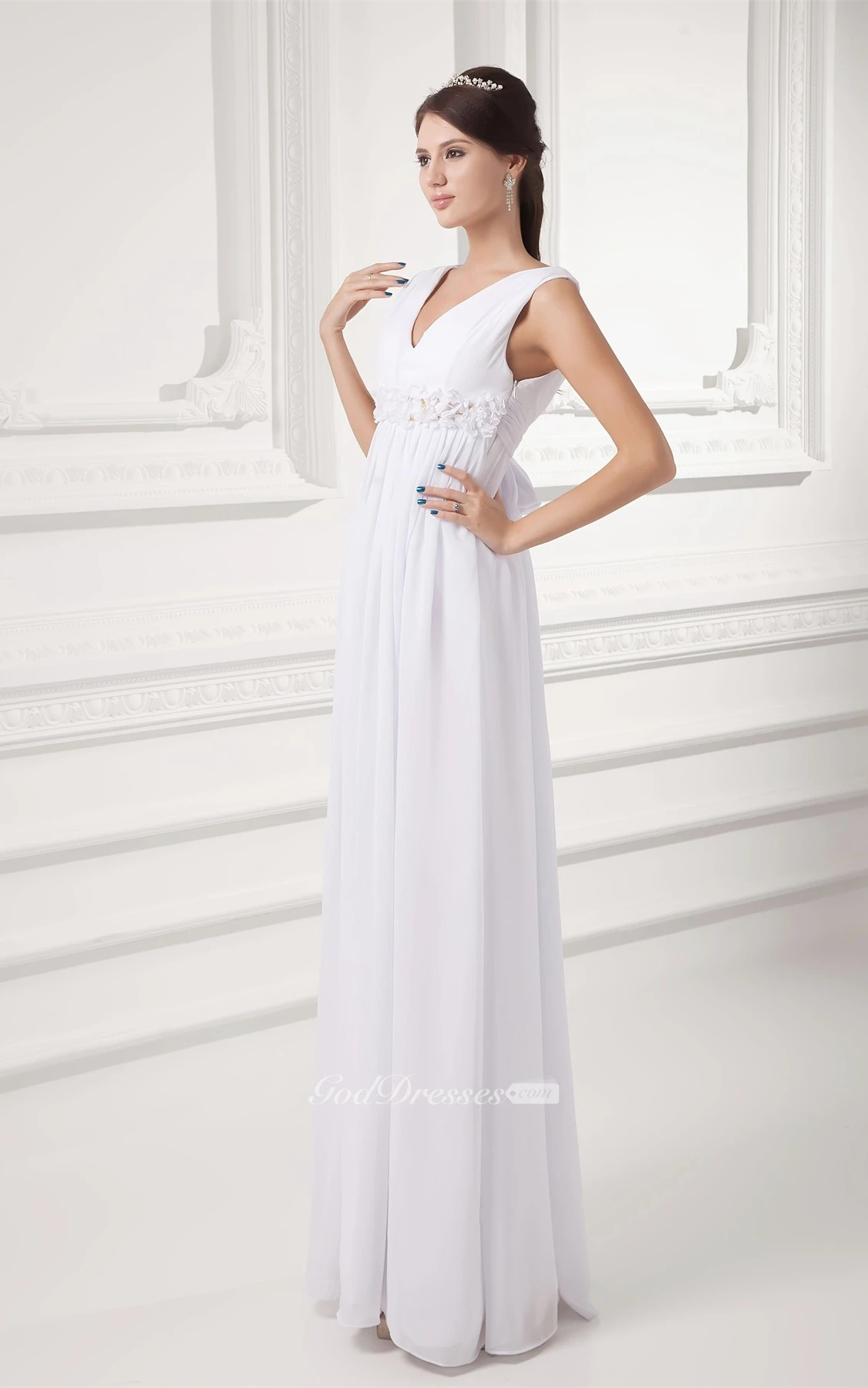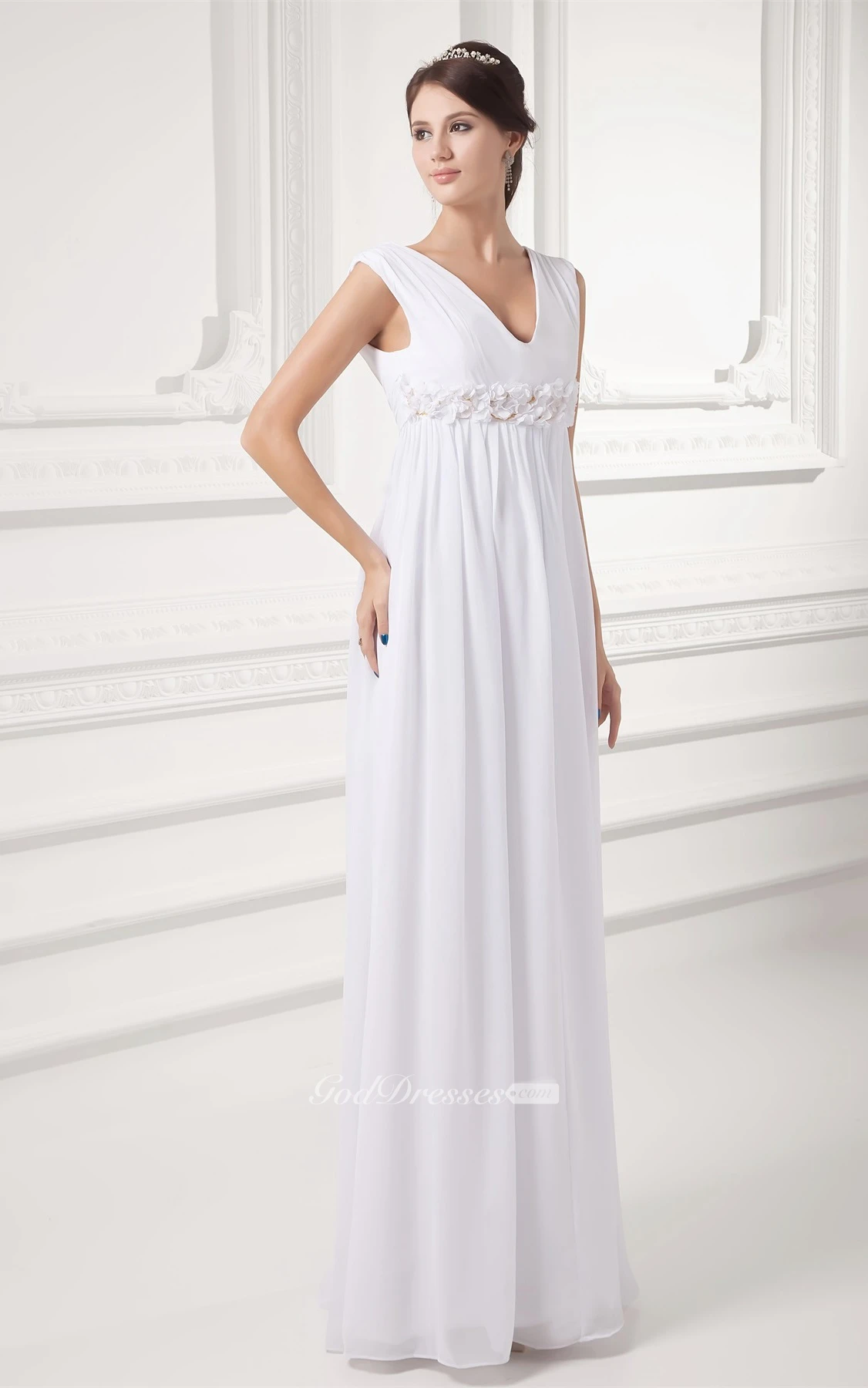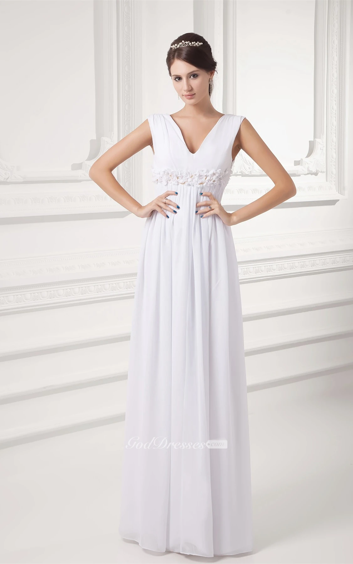 V-Neck Chiffon Long Sleeveless Dress With Floral Waist