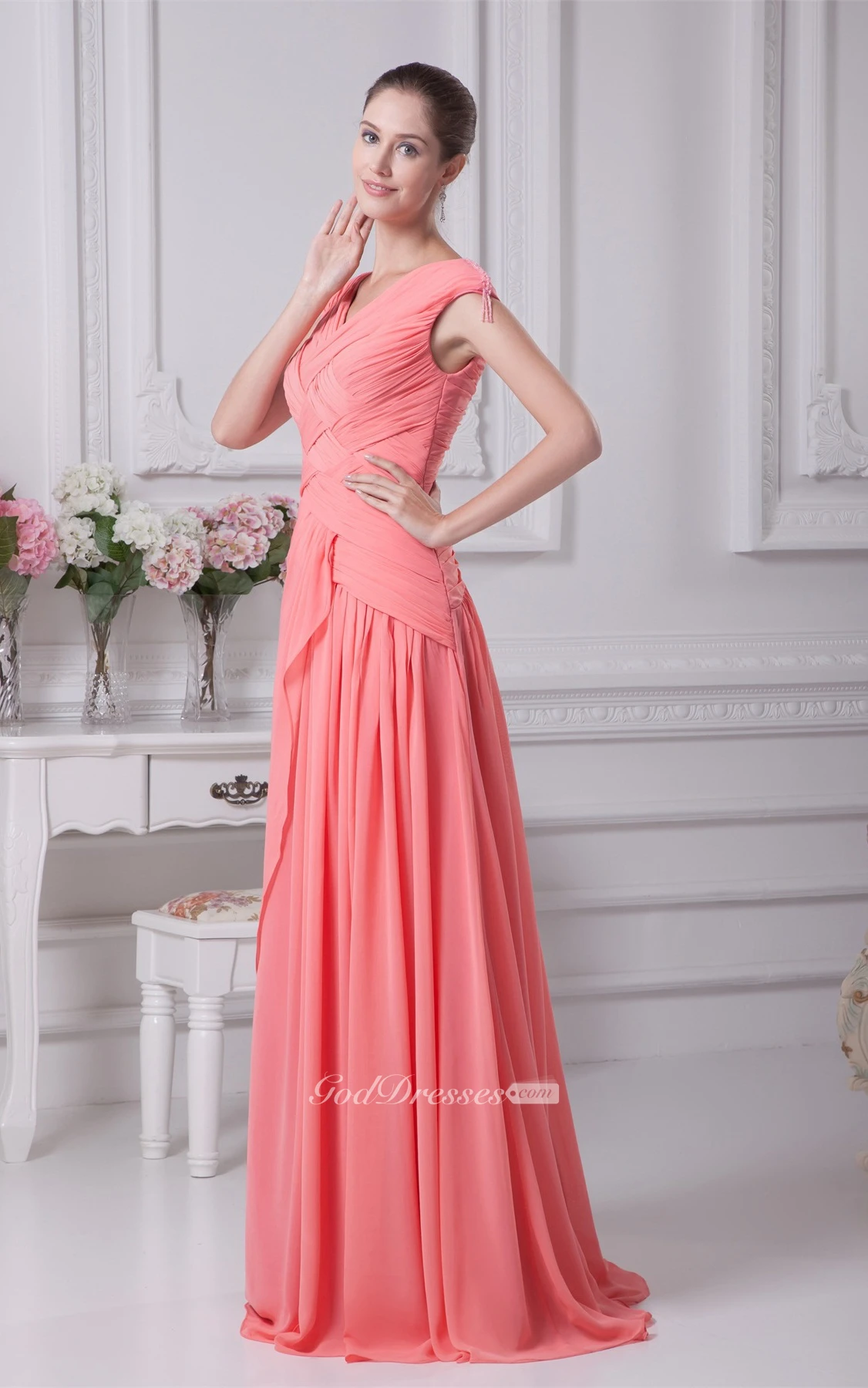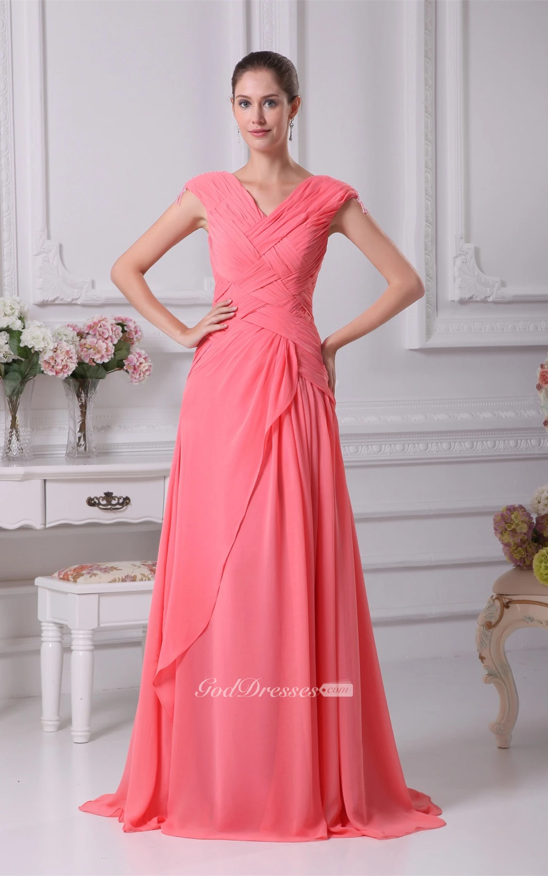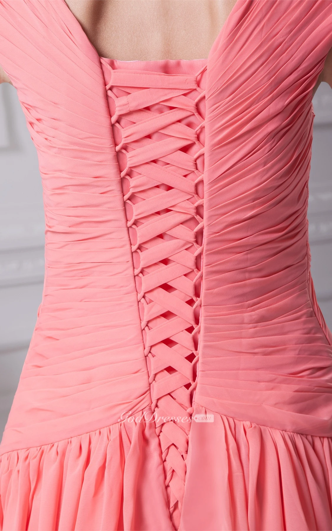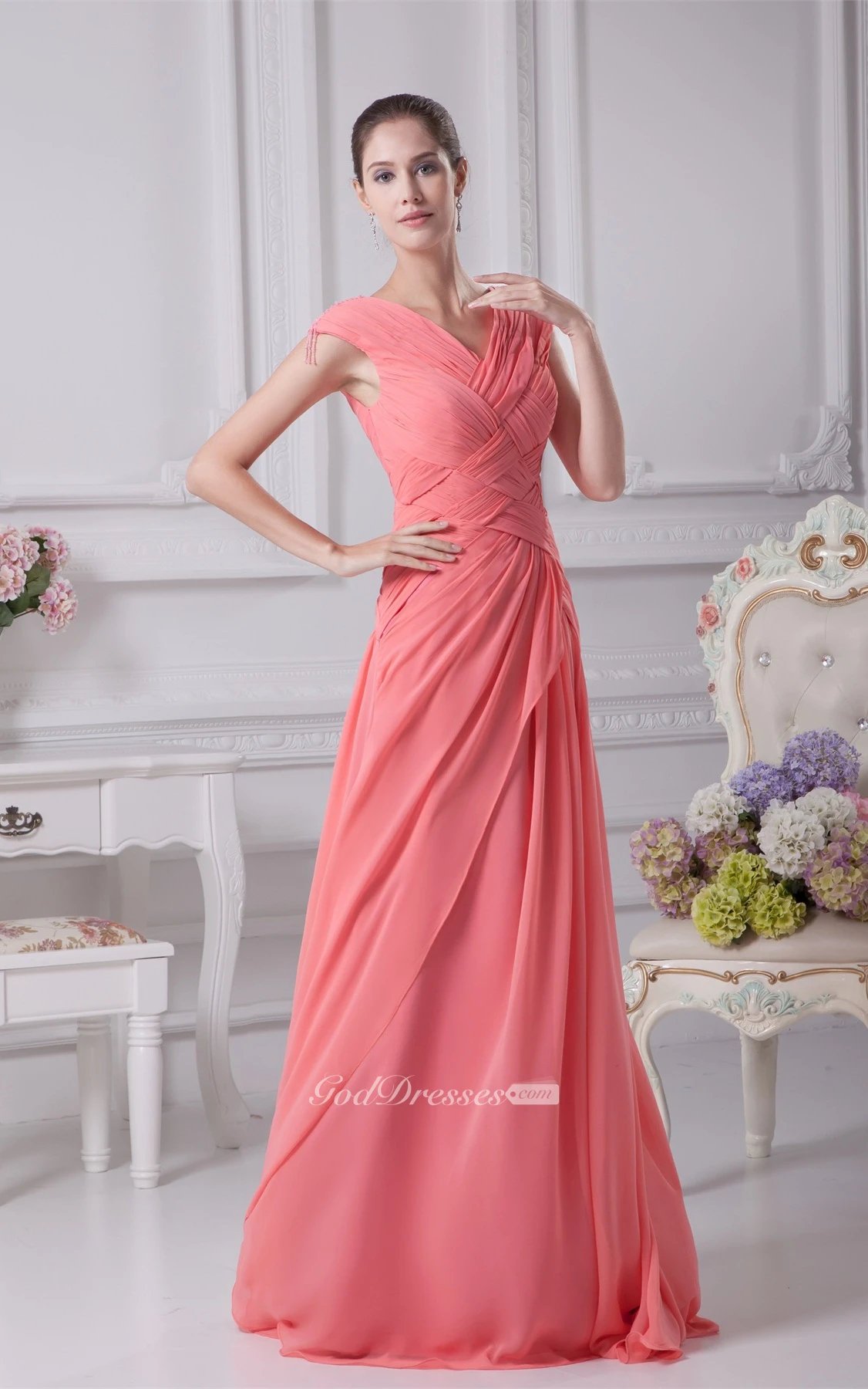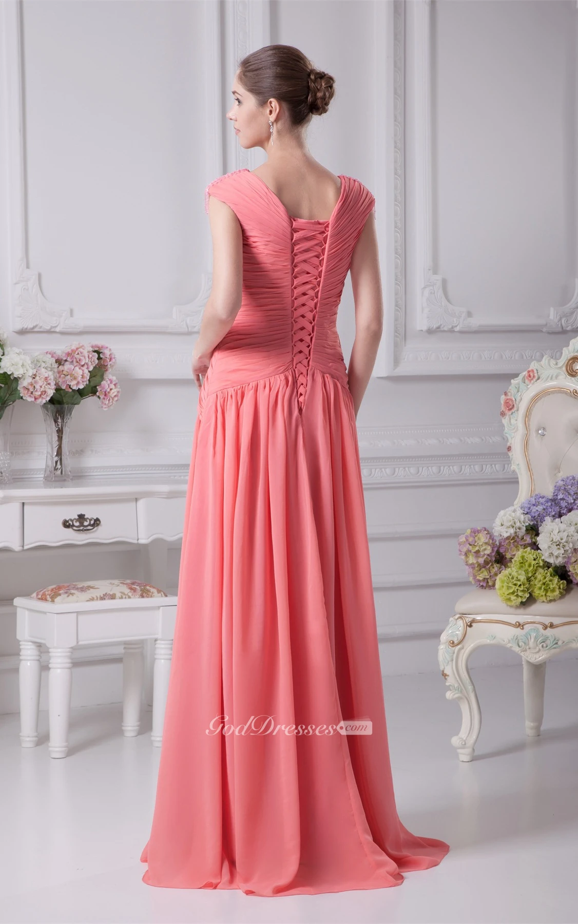 V-Neck Criss-Cross Long Caped-Sleeve Corset Back and Dress With Pleats