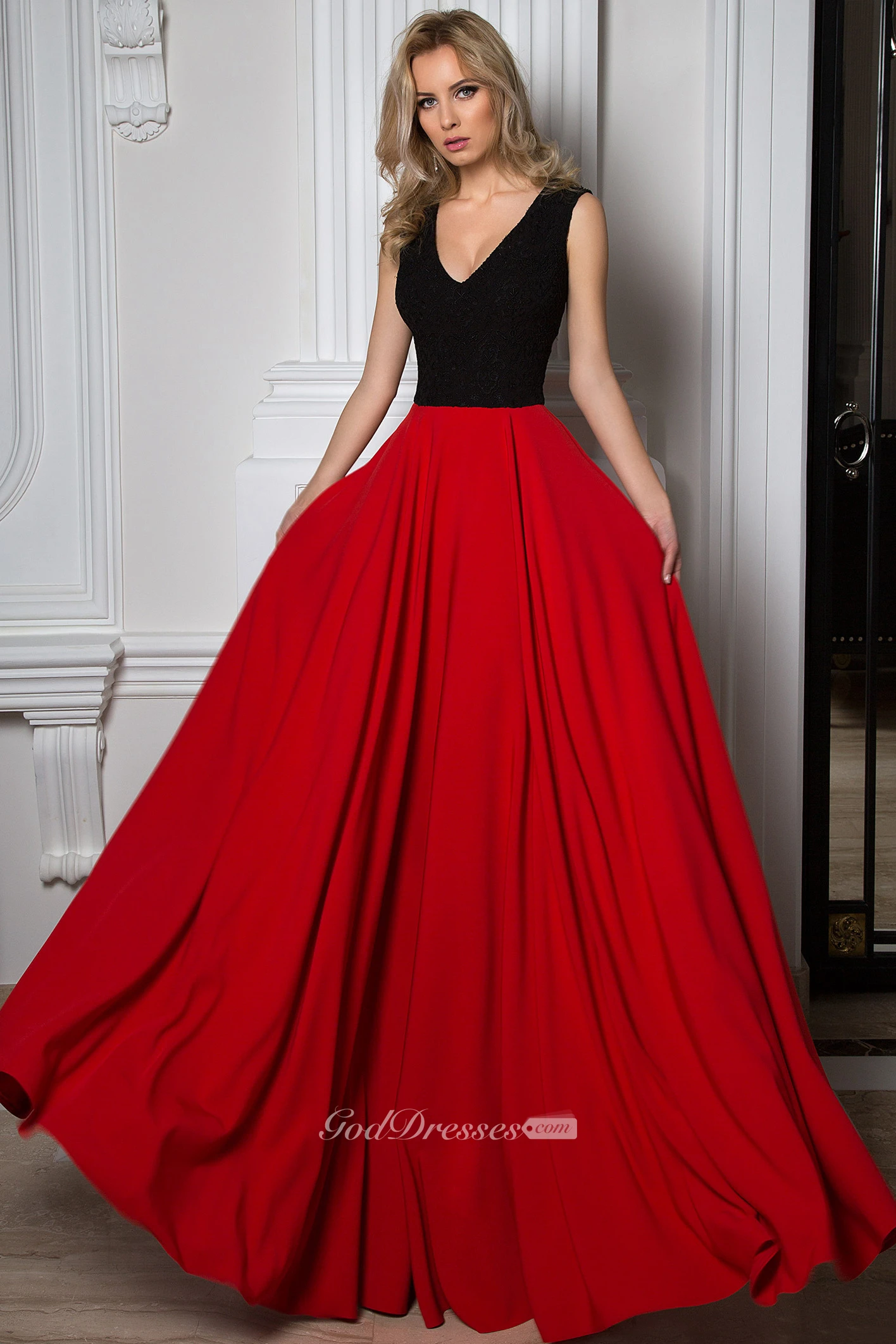 V-Neck Long Sleeveless Pleated Chiffon Prom Dress