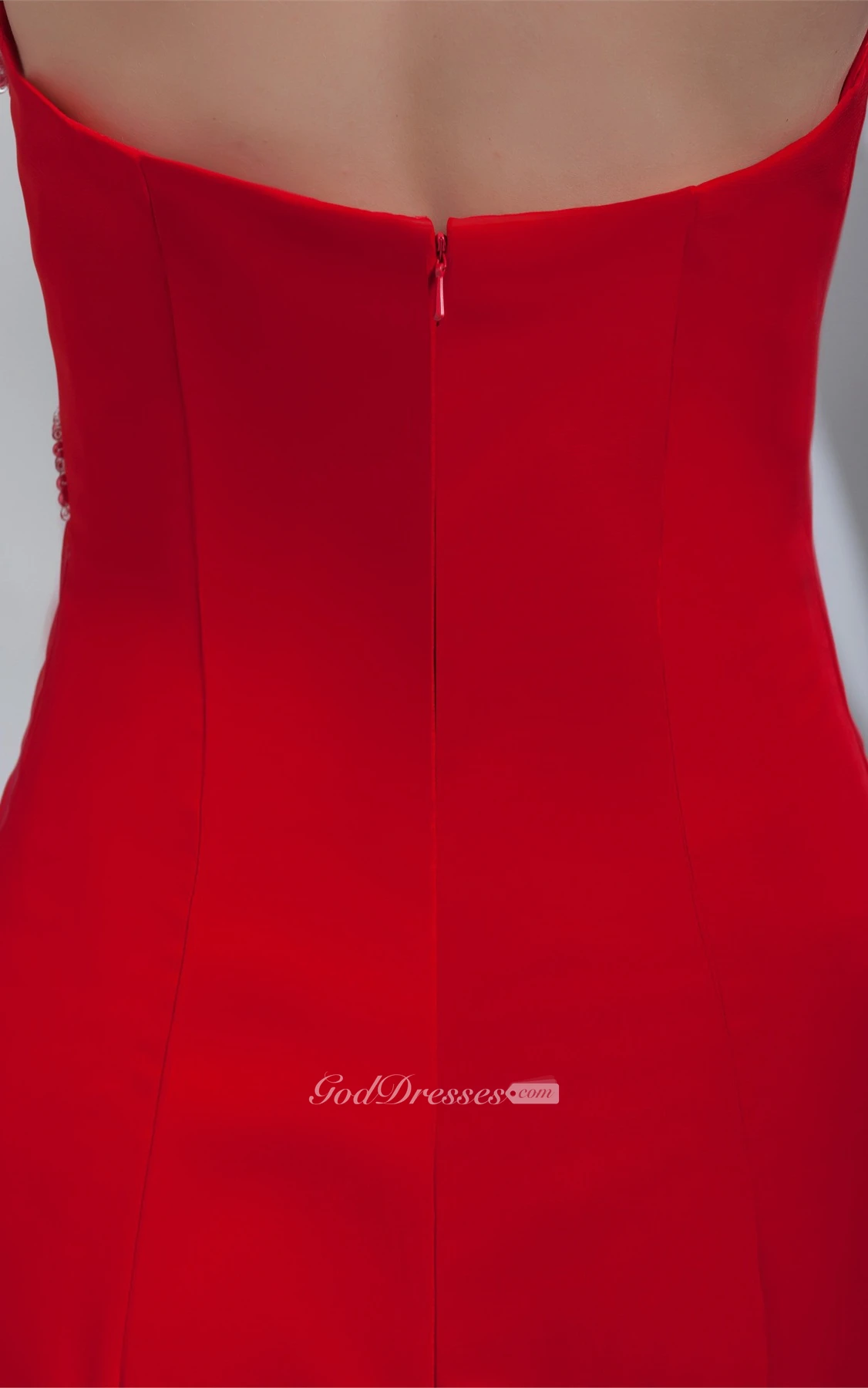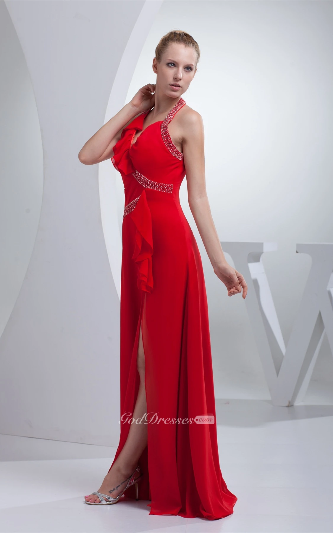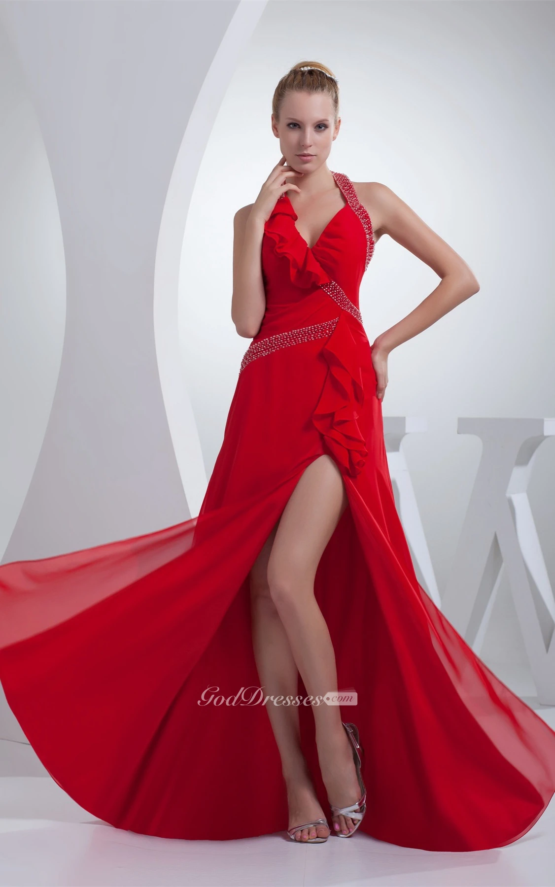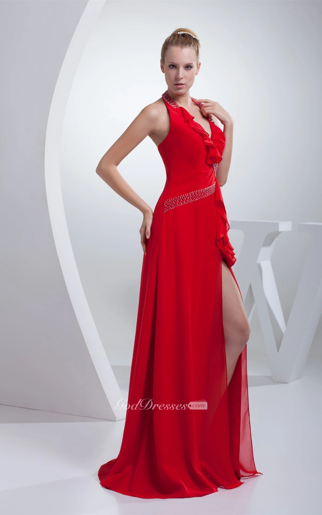 V-Neck Maxi Sleeveless Front Slit and Dress With Beading