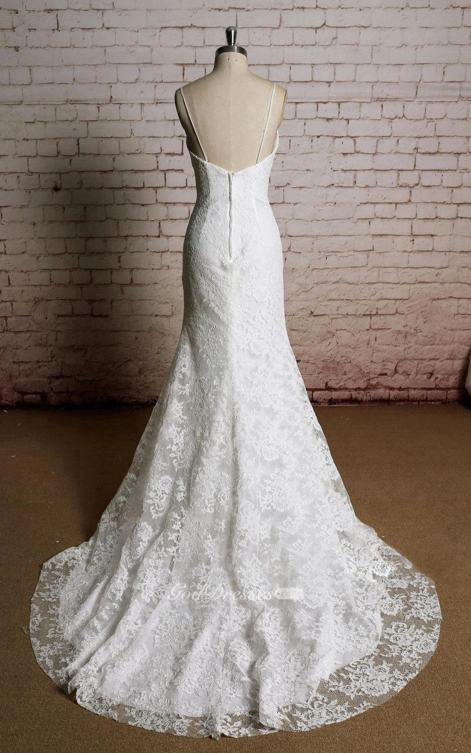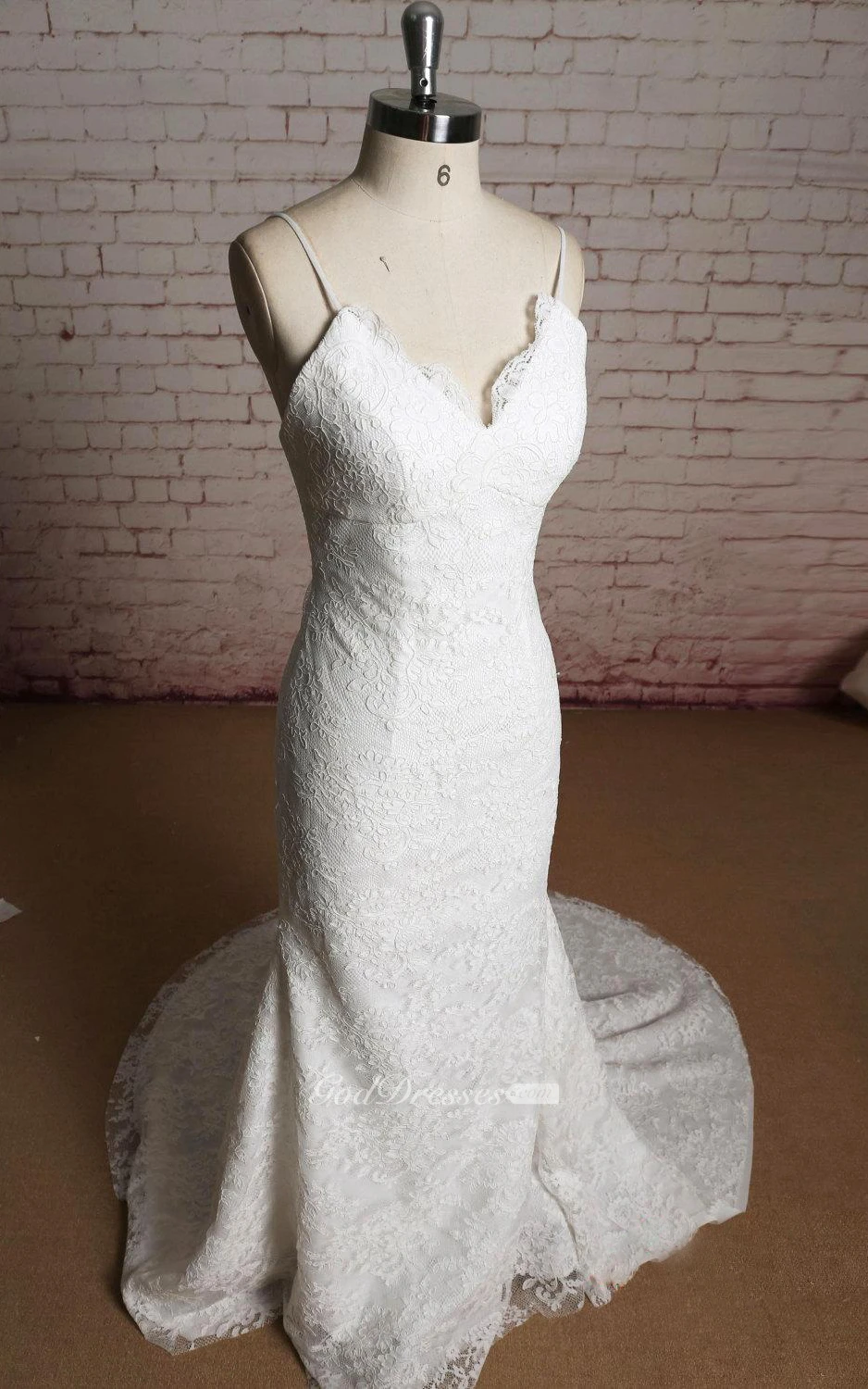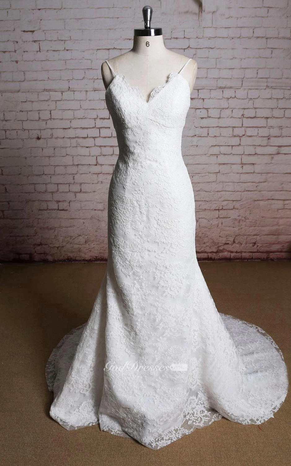 V-Neck Mermaid Lace Bridal Dress With Spaghetti Straps