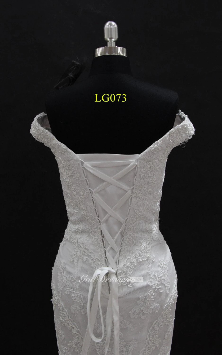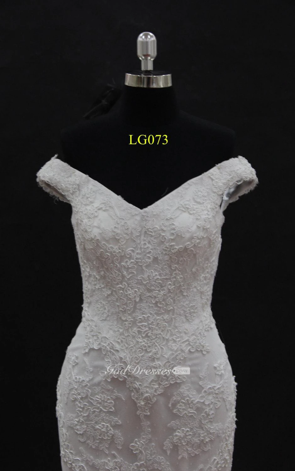 V-Neck Mermaid Lace Cap Sleeve Dress With Lace-Up Back
