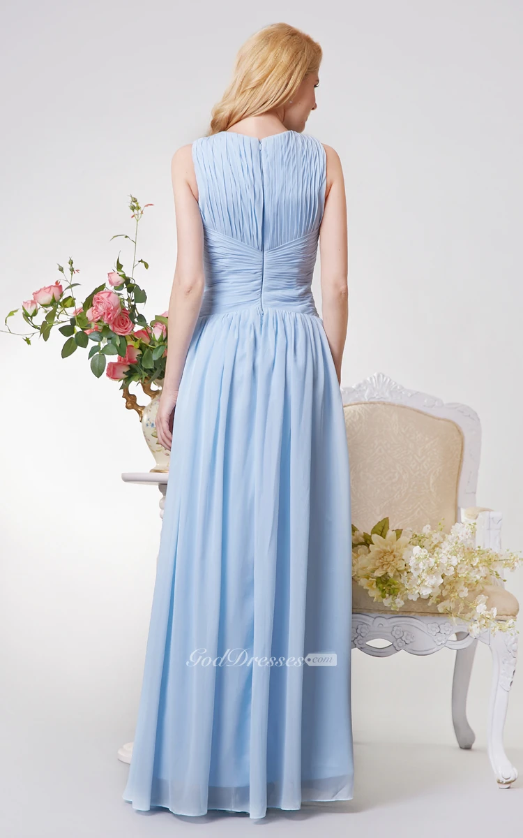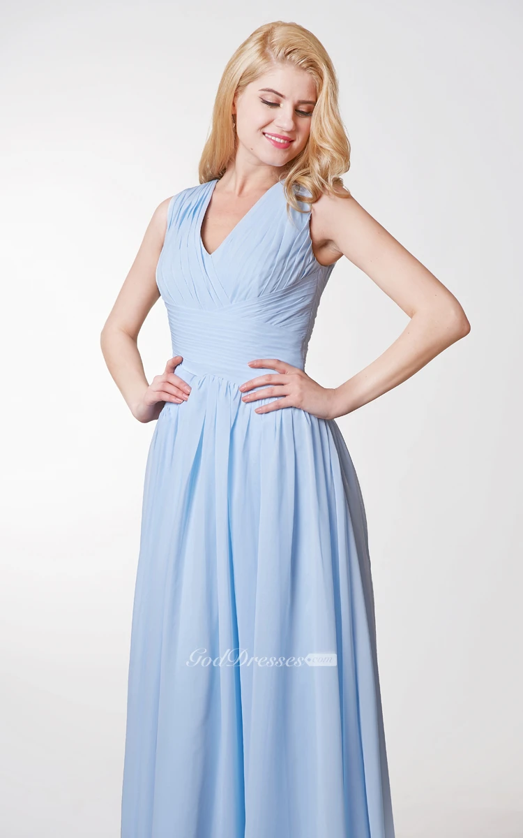 V-neck Ruched and Pleated A-line Long Chiffon Dress