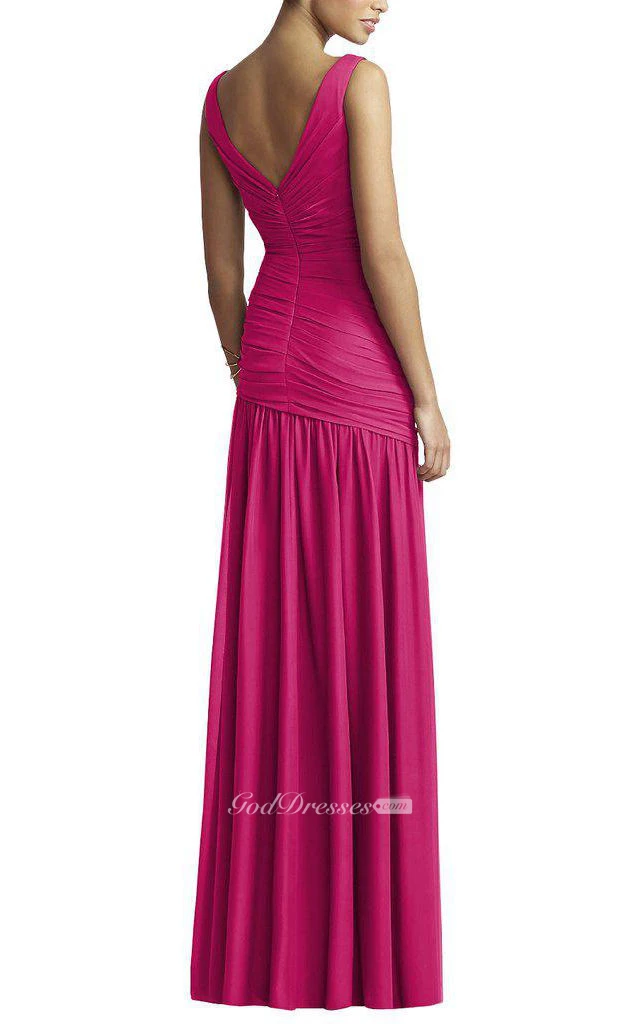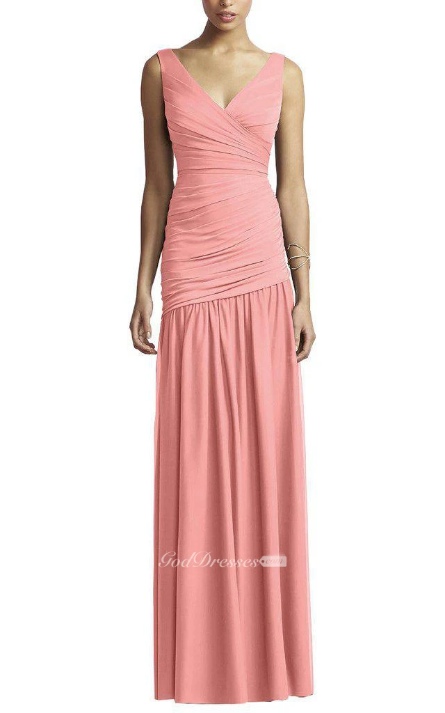 V-neck Ruched Bodycon A-line Long Dress