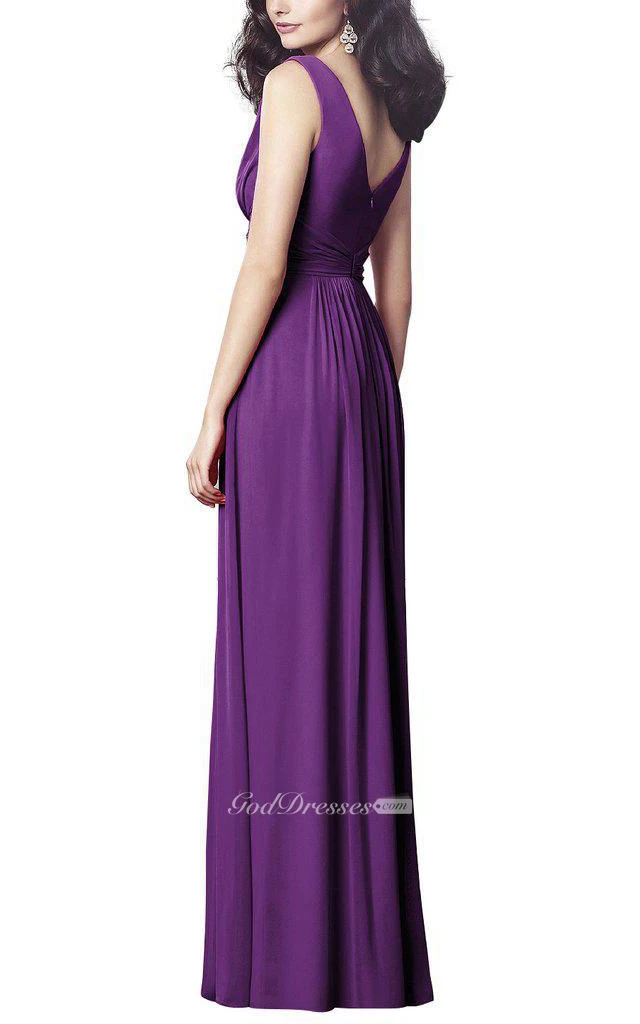 V Neck Ruched Long Chiffon Bridesmaid Dress