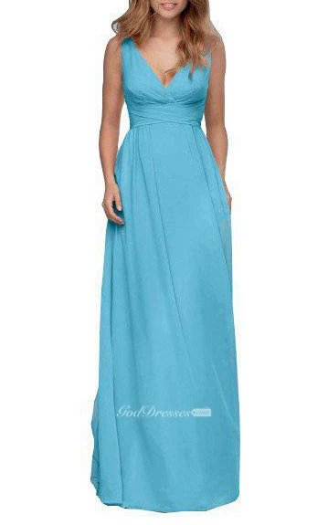 V-neck Ruched Low-v Back Long Bridesmaid Dress with Bow