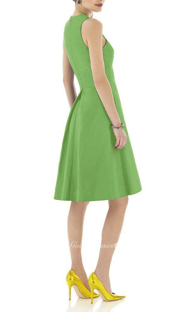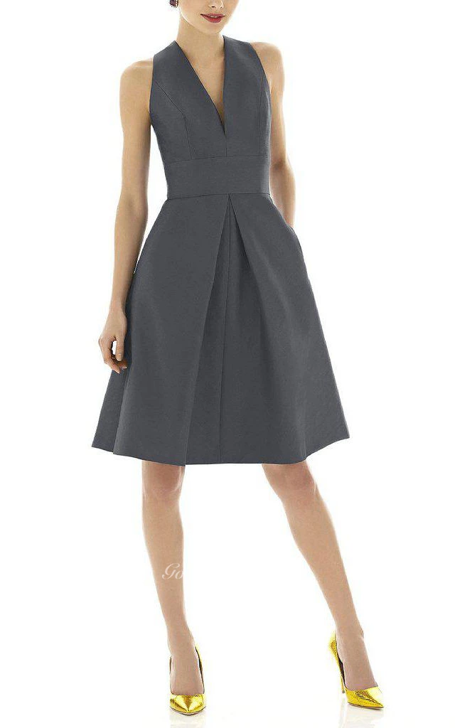 V-neck Satin A-line Short Dress with Pleats