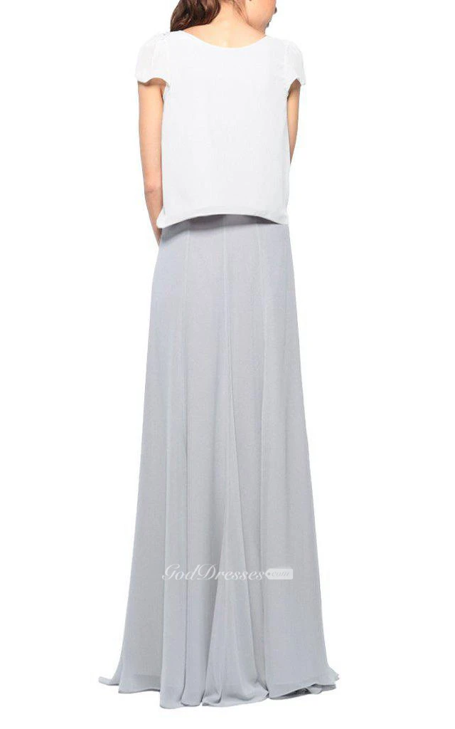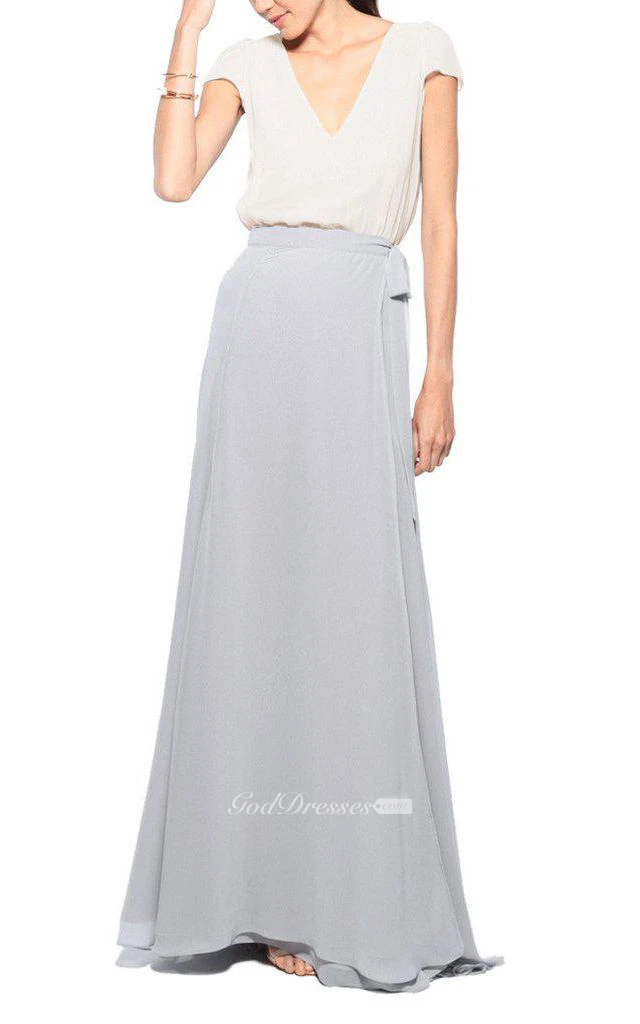 V-neck Short Sleeve Two Tone Chiffon Dress